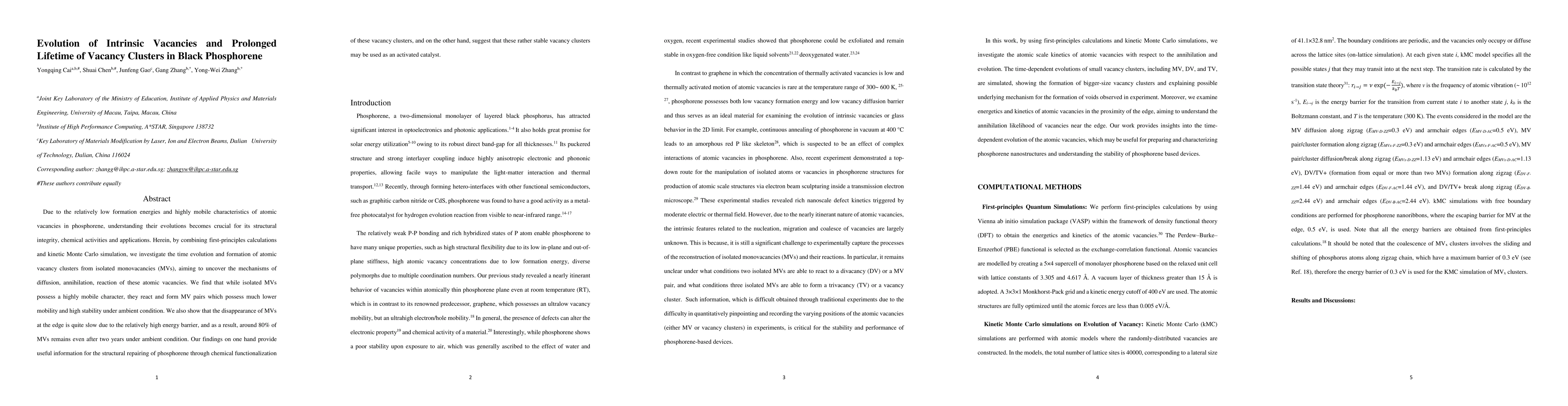 Due to the relatively low formation energies and highly mobile characteristics of atomic vacancies in phosphorene, understanding their evolutions becomes crucial for its structural integrity, chemical activities and applications. Herein, by combining first-principles calculations and kinetic Monte Carlo simulation, we investigate the time evolution and formation of atomic vacancy clusters from isolated monovacancies (MVs), aiming to uncover the mechanisms of diffusion, annihilation, reaction of these atomic vacancies. We find that while isolated MVs possess a highly mobile character, they react and form MV pairs which possess much lower mobility and high stability under ambient condition. We also show that the disappearance of MVs at the edge is quite slow due to the relatively high energy barrier, and as a result, around 80% of MVs remains even after two years under ambient condition. Our findings on one hand provide useful information for the structural repairing of phosphorene through chemical functionalization of these vacancy clusters, and on the other hand, suggest that these rather stable vacancy clusters may be used as an activated catalyst.