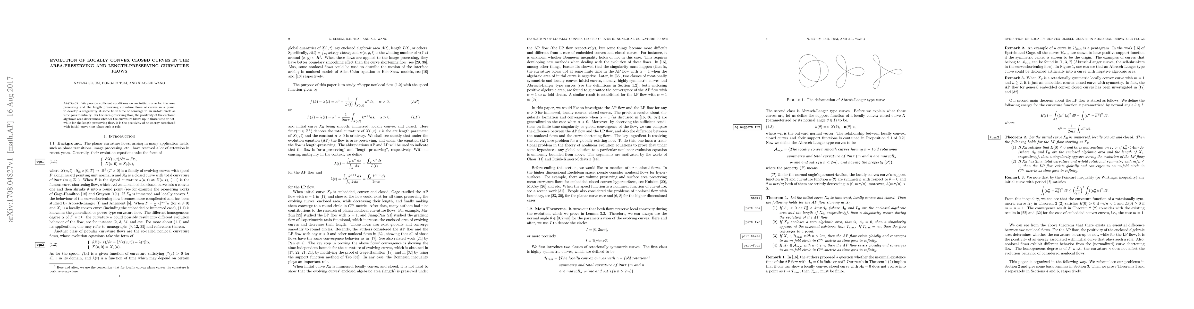 We provide sufficient conditions on an initial curve for the area preserving and the length preserving curvature flows of curves in a plane, to develop a singularity at some finite time or converge to an $m$-fold circle as time goes to infinity. For the area-preserving flow, the positivity of the enclosed algebraic area determines whether the curvature blows up in finite time or not, while for the length-preserving flow, it is the positivity of an energy associated with initial curve that plays such a role.