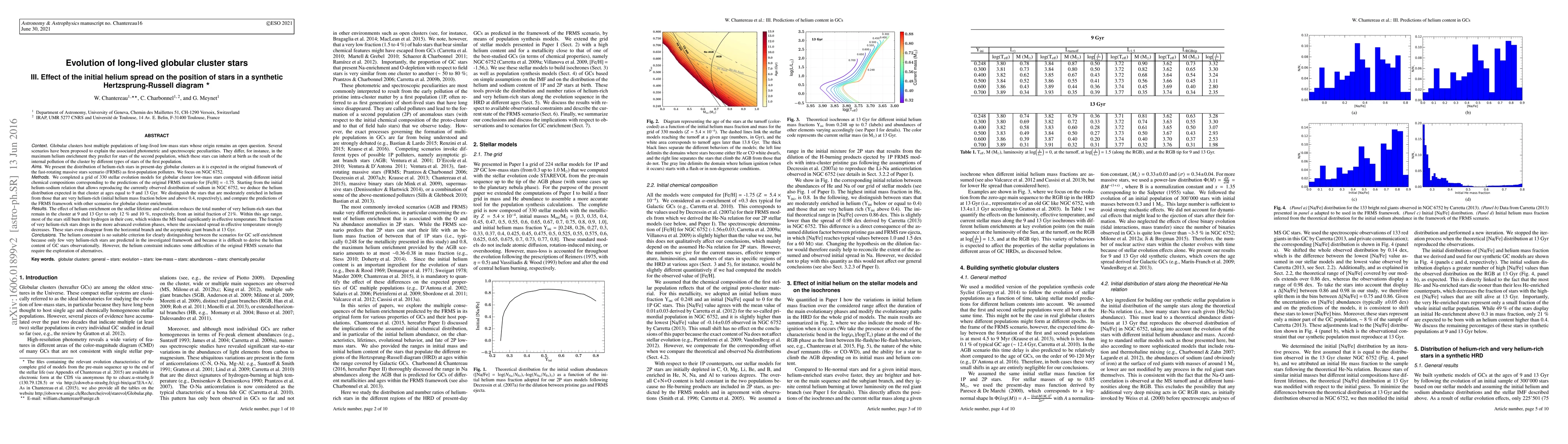 Researchers studied how the spread of helium in globular clusters affects star positions on a diagram, focusing on one cluster as part of a proposed explanation for stars' peculiarities.