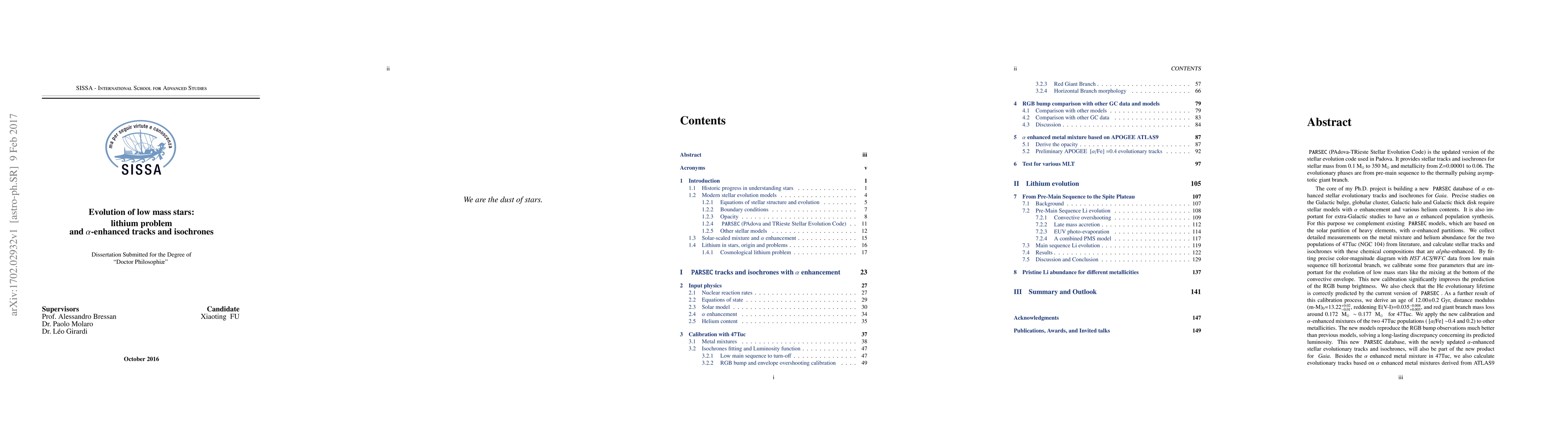 Precise studies on the Galactic bulge, halo, thick disk, and globular clusters require stellar models with alpha enhancement and various He contents. For this purpose we complement existing PARSEC (PAdova-TRieste Stellar Evolution Code) models, which are based on the solar partition, with alpha-enhanced partitions. We collect detailed measurements on the metal mixture and He abundance for the two populations of 47Tuc from literature, and calculate stellar tracks and isochrones with these chemical compositions ([alpha/Fe]~0.4 and 0.2). By fitting precise CMD with HST data from low main sequence till horizontal branch, we calibrate free parameters that are important for the evolution of low mass stars. The new calibration and alpha-enhanced mixtures are applied to other metallicities. The new models reproduce the RGB bump observations much better than previous models. PARSEC is able to predict any chemical pattern in stellar evolution. Li is one of the most intriguing ones. Li abundance derived in POP II dwarfs is about three times lower than the standard Big Bang Nucleosynthesis predicts. This disagreement is referred as the cosmological lithium problem. We reconsider the stellar Li evolution from pre-main sequence to the end of main sequence by introducing the effects of convective overshooting and residual accretion. $^7$Li could be significantly depleted by convective overshooting in the pre-main sequence and then partially restored in the stellar atmosphere by a tail of matter accretion which could be regulated by EUV photo-evaporation. By considering the conventional nuclear burning and microscopic diffusion along the main sequence, we reproduce the Spite plateau for $m_0=0.62-0.80M_{\odot}$ stars, and the Li declining branch for lower mass dwarfs, with a wide range of metallicities (Z=0.00001 to Z=0.0005), starting from the primordial abundance A(Li)=2.72.