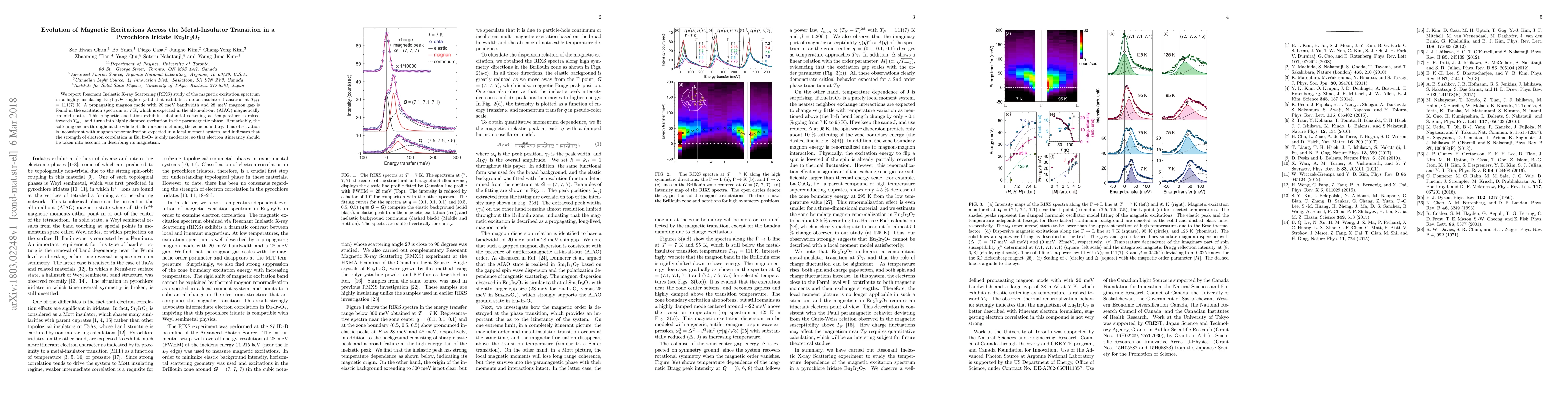 This study uses Resonant Inelastic X-ray Scattering to investigate the magnetic excitation spectrum in Eu$_{2}$Ir$_{2}$O$_{7}$, revealing a propagating magnon mode softening as temperature approaches the metal-insulator transition. The observed behavior suggests moderate electron correlation, indicating the importance of electron itinerancy in describing the material's magnetism.