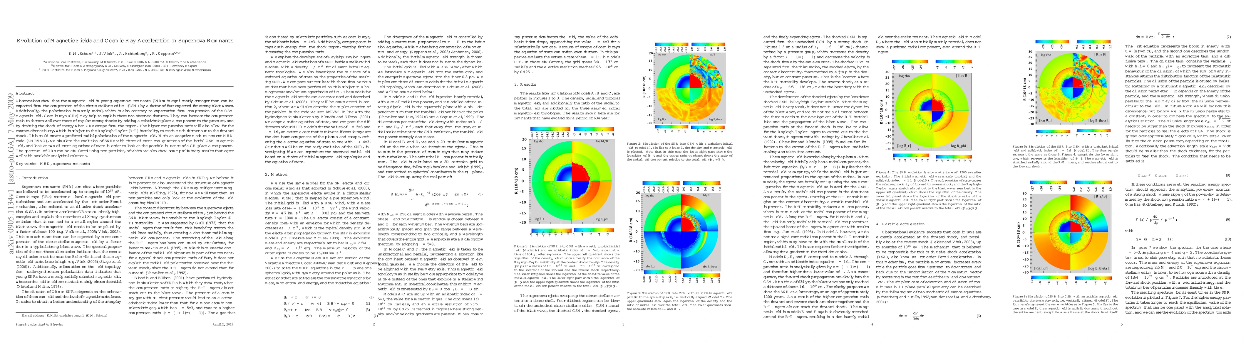 This paper investigates the evolution of magnetic fields and cosmic ray acceleration in supernova remnants (SNRs), finding that cosmic rays can significantly enhance magnetic field compression and create radial polarization contrary to expectations from CSM compression alone. Simulations using an adaptive mesh refinement MHD code show preliminary results consistent with analytical solutions.