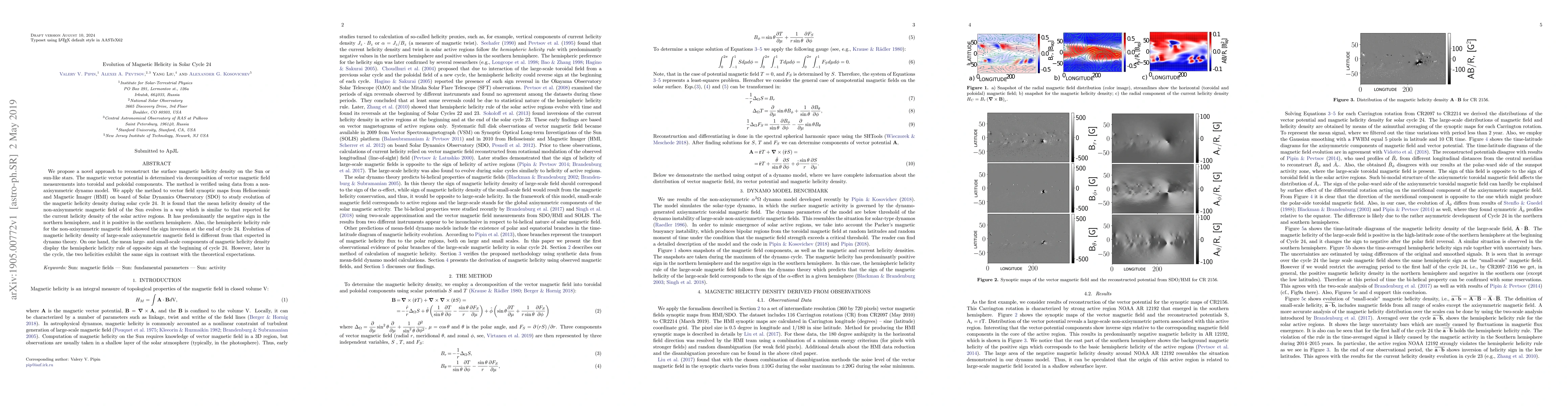 This paper introduces a new method to reconstruct surface magnetic helicity density on the Sun using vector magnetic field measurements, and applies it to study solar cycle 24. The results show that the non-axisymmetric magnetic field follows a hemispheric helicity rule, while the large-scale axisymmetric field's evolution deviates from theoretical predictions.