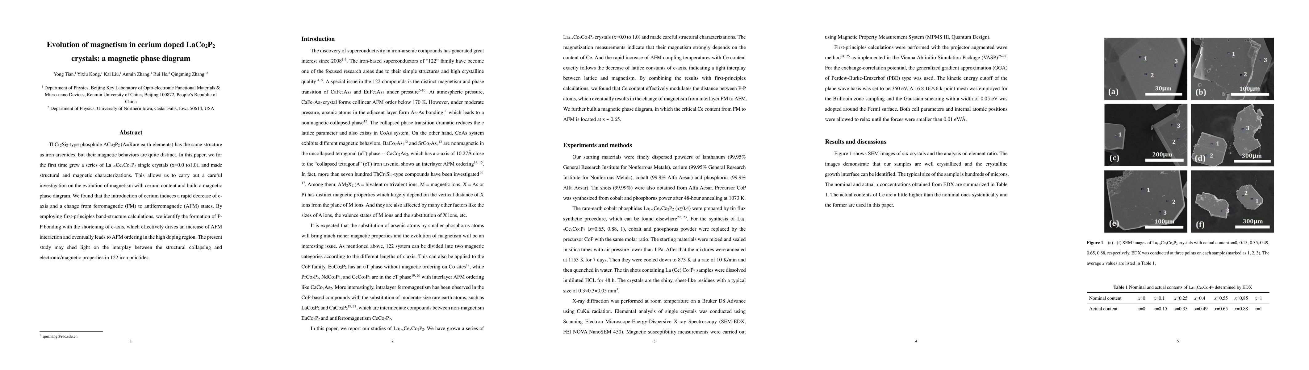 ThCr2Si2-type phosphide ACo2P2 (A=Rare earth elements) has the same structure as iron arsenides, but their magnetic behaviors are quite distinct. In this paper, we for the first time grew a series of La1-xCexCo2P2 single crystals (x=0.0 to1.0), and made structural and magnetic characterizations. This allows us to carry out a careful investigation on the evolution of magnetism with cerium content and build a magnetic phase diagram. We found that the introduction of cerium induces a rapid decrease of c-axis and a change from ferromagnetic (FM) to antiferromagnetic (AFM) states. By employing first-principles band-structure calculations, we identify the formation of P-P bonding with the shortening of c-axis, which effectively drives an increase of AFM interaction and eventually leads to AFM ordering in the high doping region. The present study may shed light on the interplay between the structural collapsing and electronic/magnetic properties in 122 iron pnictides.