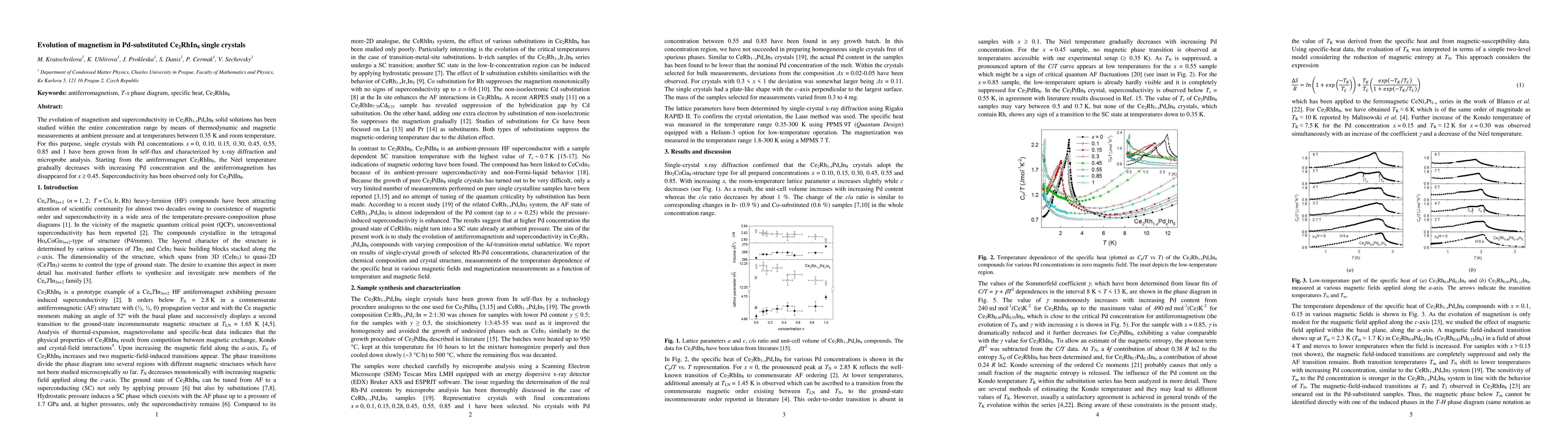 This study examines the impact of Pd substitution on magnetism and superconductivity in Ce2RhIn8 crystals. As Pd content rises, the Néel temperature of antiferromagnet Ce2RhIn8 decreases until antiferromagnetism vanishes for Pd concentrations of 0.45 or higher. Superconductivity is only observed in the Ce2PdIn8 compound.
