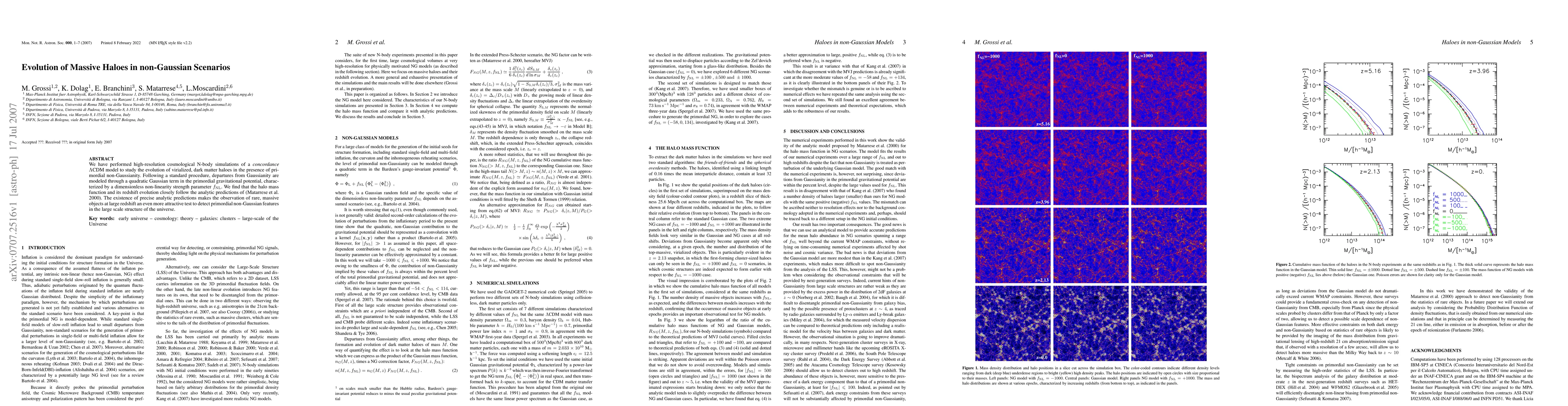We have performed high-resolution cosmological N-body simulations of a concordance LCDM model to study the evolution of virialized, dark matter haloes in the presence of primordial non-Gaussianity. Following a standard procedure, departures from Gaussianity are modeled through a quadratic Gaussian term in the primordial gravitational potential, characterized by a dimensionless non-linearity strength parameter f_NL. We find that the halo mass function and its redshift evolution closely follow the analytic predictions of Matarrese et al.(2000). The existence of precise analytic predictions makes the observation of rare, massive objects at large redshift an even more attractive test to detect primordial non-Gaussian features in the large scale structure of the universe.