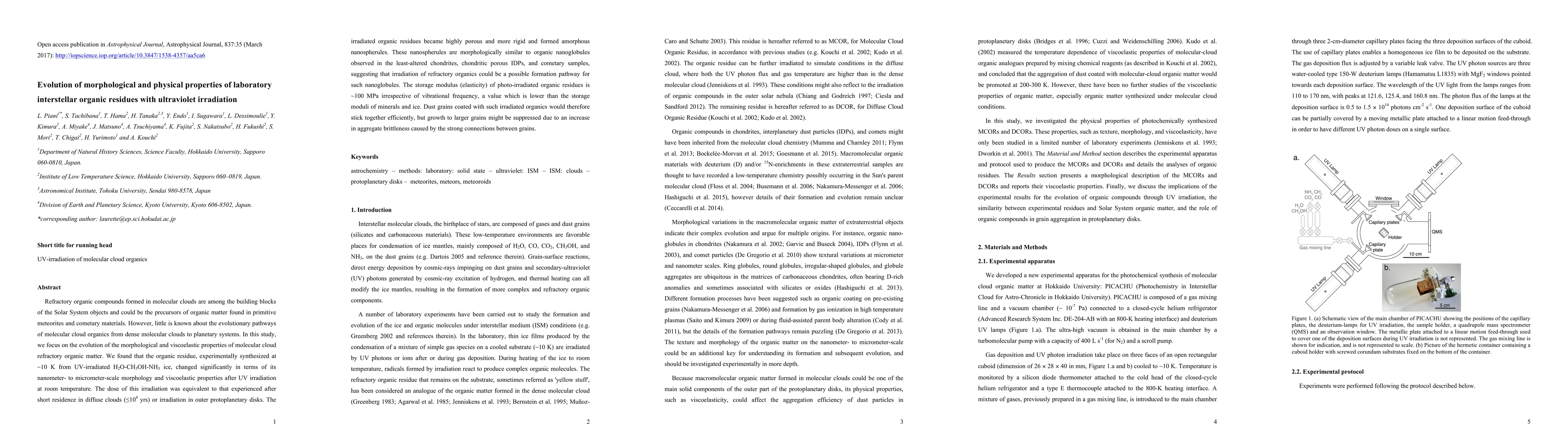 Lab-created interstellar organic residues transformed into highly porous nanospherules after UV irradiation, suggesting a possible formation pathway for similar structures in cometary samples. The resulting material exhibits unique viscoelastic properties that could affect dust grain aggregation.