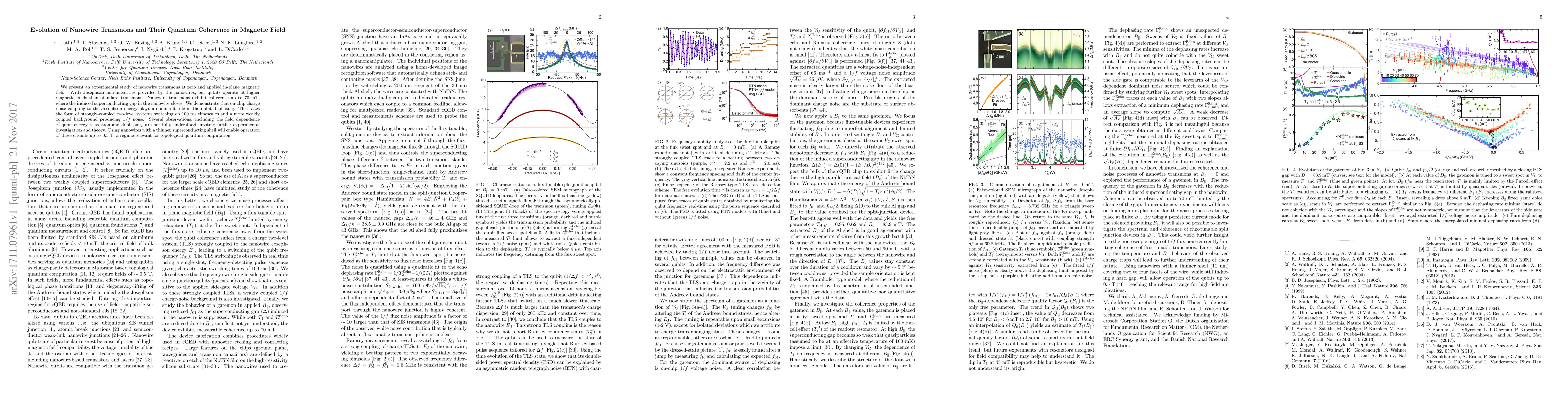 This study explores nanowire transmons operating at higher magnetic fields than standard transmons, showing coherence up to 70 mT. The research identifies on-chip charge noise as a major factor in qubit dephasing, revealing complex noise behaviors and inviting further theoretical exploration.