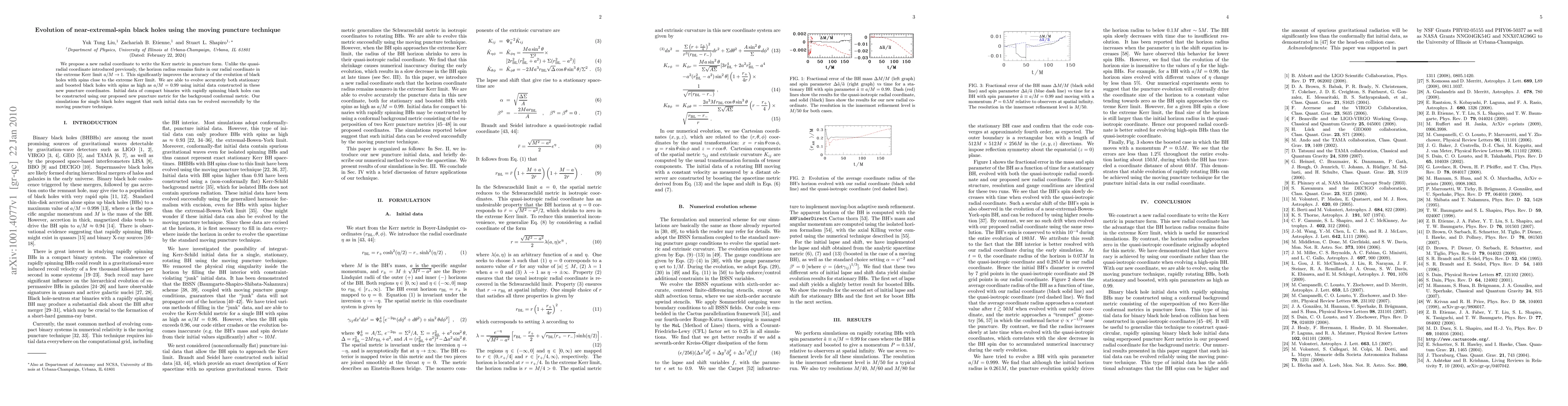 This paper introduces a new radial coordinate for the Kerr metric in puncture form, ensuring the horizon radius remains finite in the extreme Kerr limit, thus improving the accuracy of simulations for near-extremal-spin black holes. The moving puncture technique successfully evolves both stationary and boosted black holes with spins up to a/M=0.99.