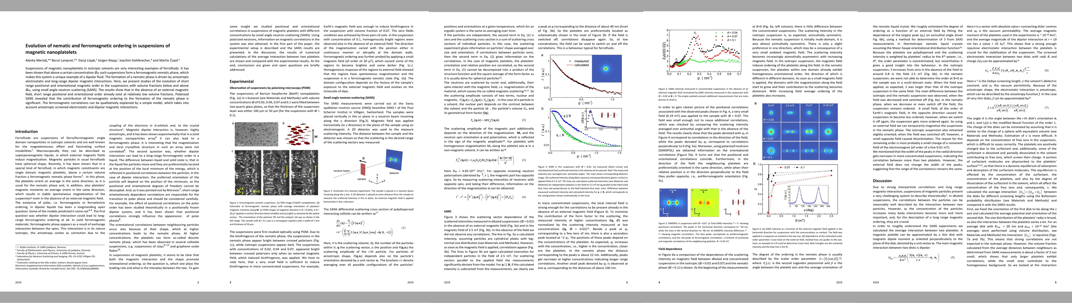This study investigates magnetic nanoplatelet suspensions, discovering that below a critical volume fraction u03b7_NI, short-range positional and orientational magnetic order exists without an external field. Using small-angle neutron scattering (SANS), researchers found ferromagnetic ordering significantly contributes to nematic phase formation, explainable by anisotropic electrostatic and dipolar magnetic interactions.