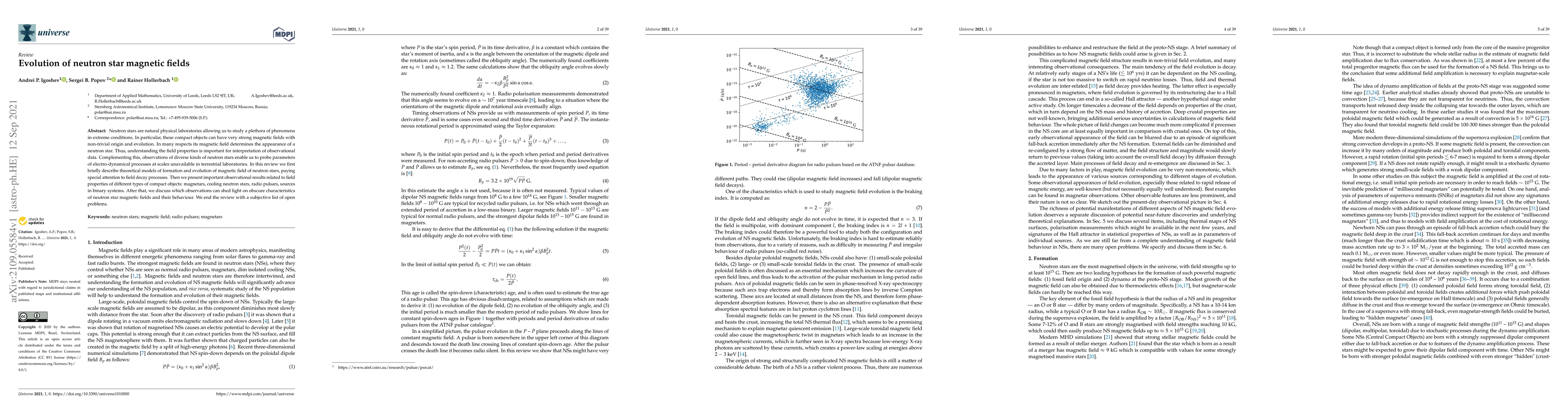 This review explores theoretical models and observational data on the formation and evolution of neutron star magnetic fields, focusing on decay processes and their implications for different types of neutron stars, including magnetars and pulsars, and identifies open questions in the field.