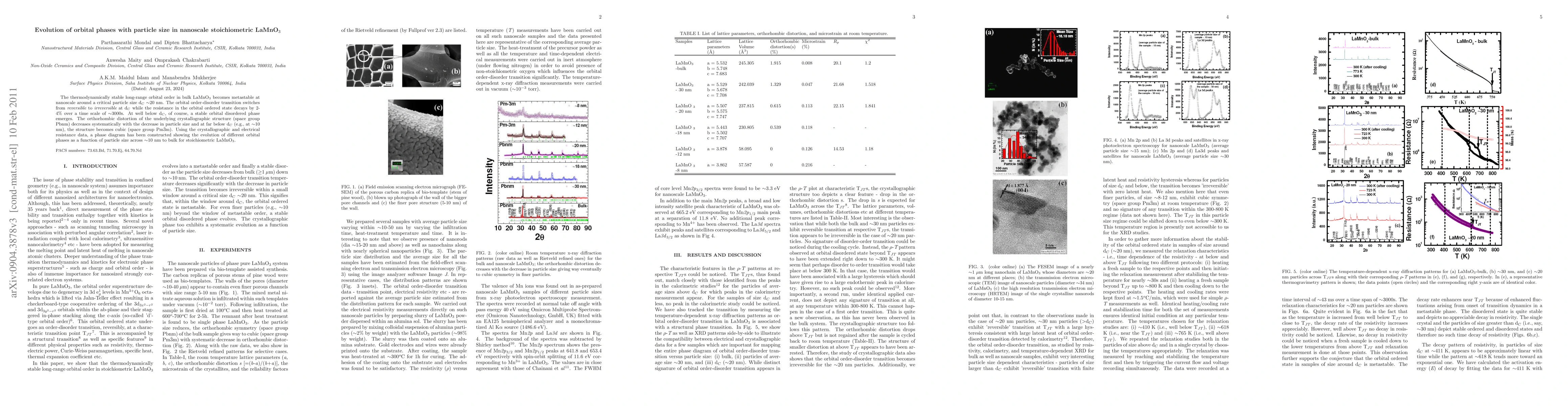 The thermodynamic stability of LaMnO3 changes at a critical particle size of around 20 nm, leading to an orbital order-disorder transition with irreversible behavior below this threshold.