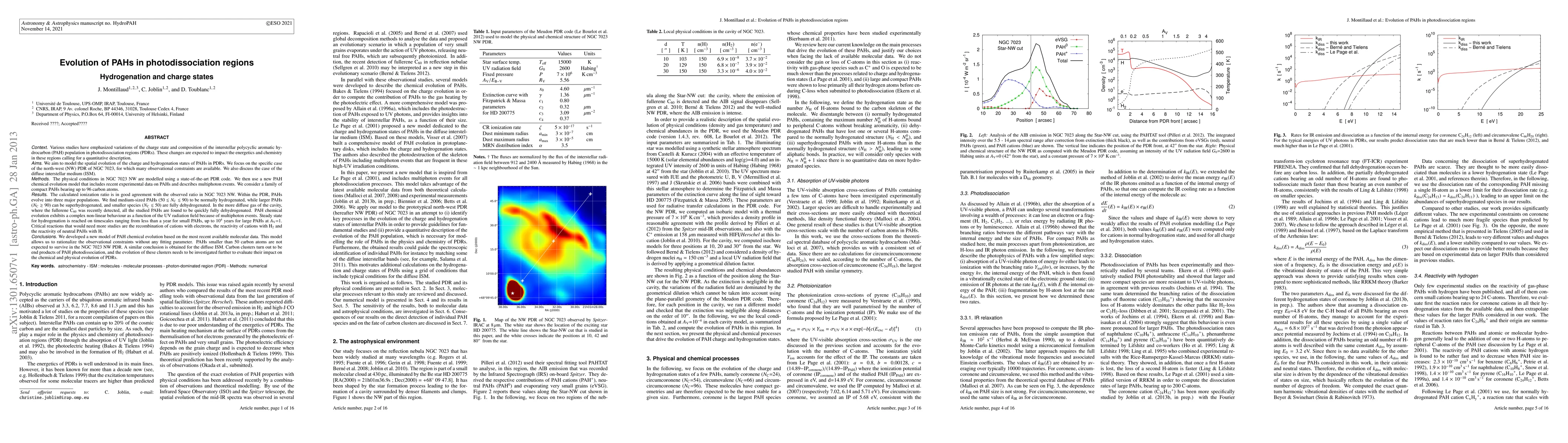 evolution of the charge and hydrogenation states of PAHs in PDRs. We focus on