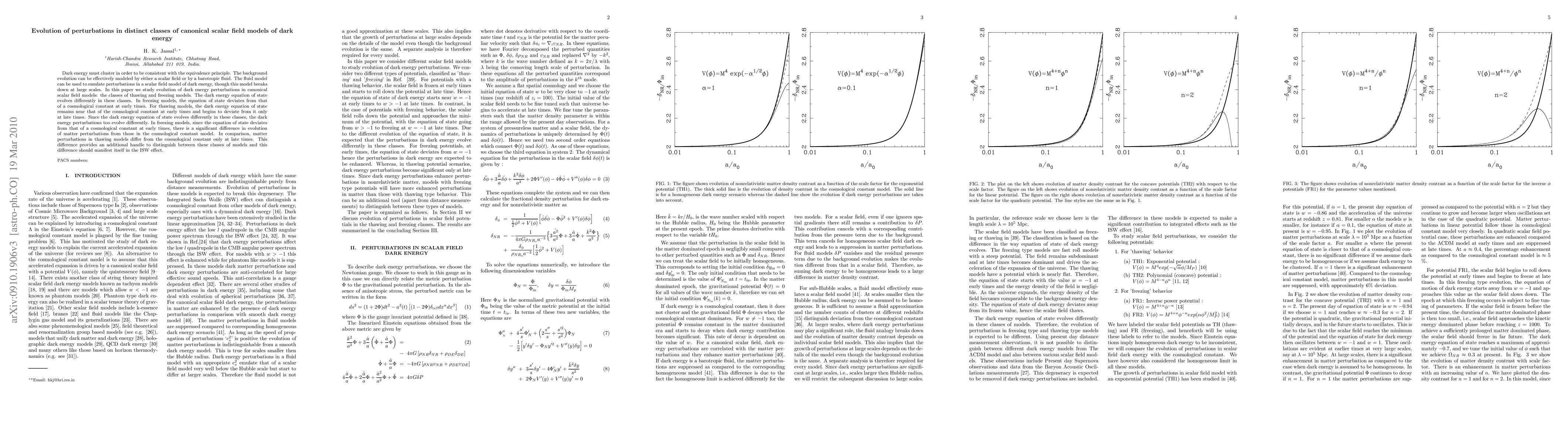 This paper investigates the evolution of perturbations in canonical scalar field models of dark energy, specifically thawing and freezing models, and finds that the dark energy equation of state and matter perturbations evolve differently in these classes, providing a method to distinguish between them through the Integrated Sachs-Wolfe effect.