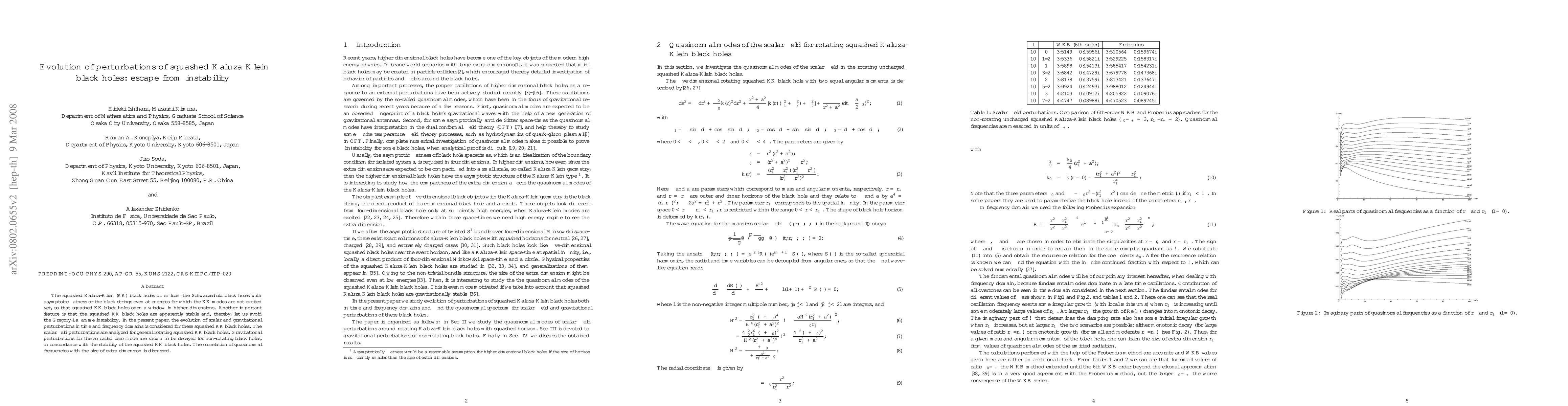 This paper studies the evolution of perturbations in squashed Kaluza-Klein (KK) black holes, demonstrating stability through the decay of gravitational perturbations, thus avoiding Gregory-Laflamme instability, and correlating quasinormal frequencies with the size of extra dimensions.