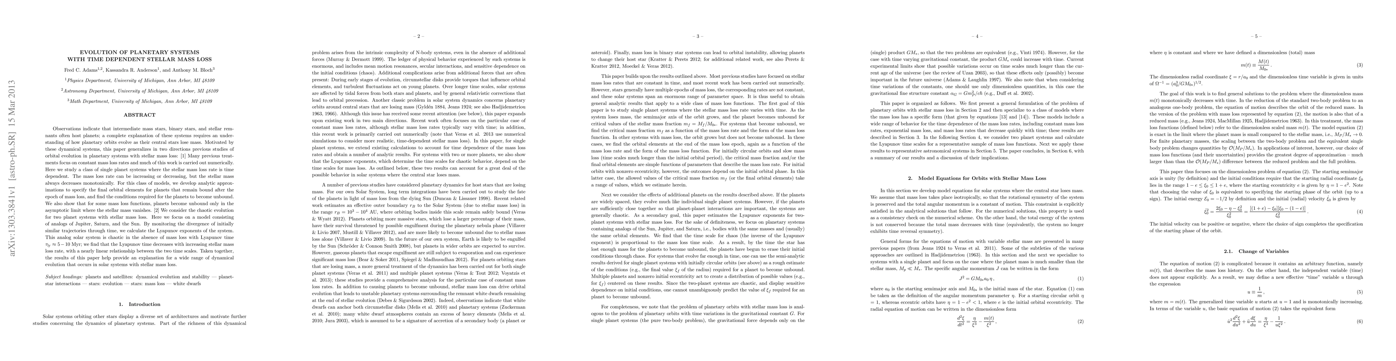 This paper studies the evolution of planetary systems as their central stars undergo time-dependent mass loss, developing analytic approximations for single planet systems and examining chaotic dynamics in two-planet systems. It reveals that mass loss can lead to planetary unbinding, and the Lyapunov time of chaotic systems decreases linearly with increasing mass loss rate.