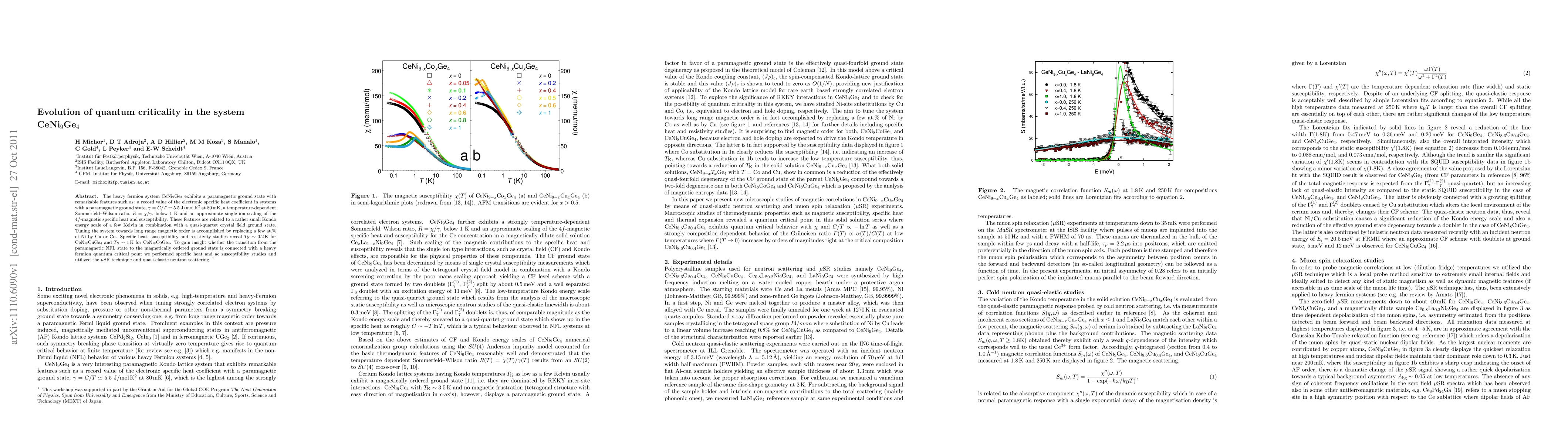The heavy fermion system CeNi9Ge4 exhibits a paramagnetic ground state with remarkable features such as: a record value of the electronic specific heat coefficient in systems with a paramagnetic ground state, \gamma = C/T \simeq 5.5 J/molK^2 at 80 mK, a temperature-dependent Sommerfeld-Wilson ratio, R=\chi/\gamma, below 1 K and an approximate single ion scaling of the 4f-magnetic specific heat and susceptibility. These features are related to a rather small Kondo energy scale of a few Kelvin in combination with a quasi-quartet crystal field ground state. Tuning the system towards long range magnetic order is accomplished by replacing a few at.% of Ni by Cu or Co. Specific heat, susceptibility and resistivity studies reveal T_N \sim 0.2 K for CeNi8CuGe4 and T_N \sim 1 K for CeNi8CoGe4. To gain insight whether the transition from the paramagnetic NFL state to the magnetically ordered ground state is connected with a heavy fermion quantum critical point we performed specific heat and ac susceptibility studies and utilized the \mu SR technique and quasi-elastic neutron scattering.