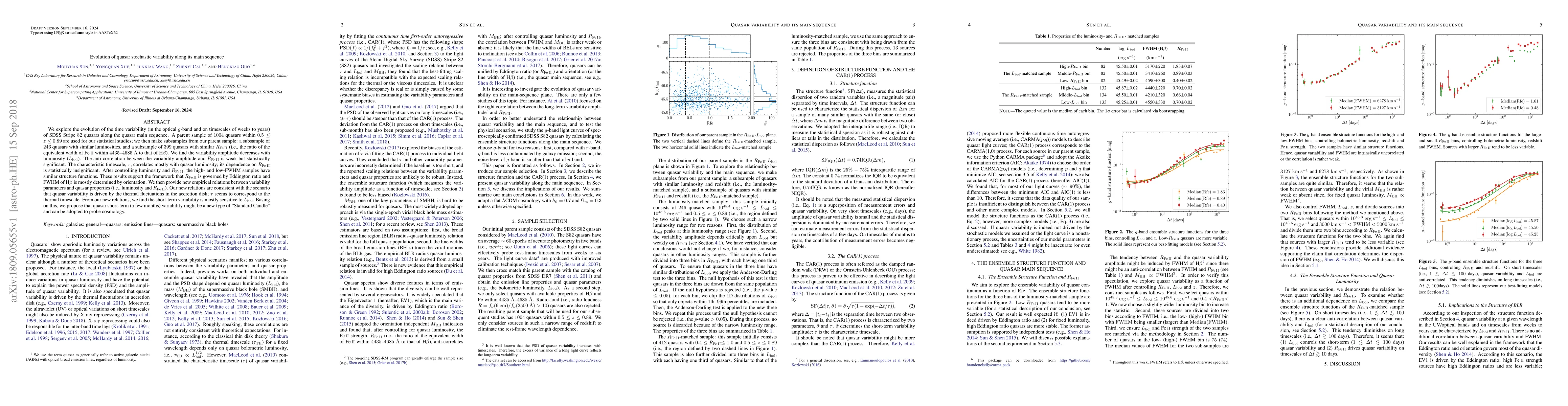 This study examines how quasars' variability changes as they evolve along their main sequence, revealing a decrease in variability with increasing luminosity and a weak anti-correlation with iron emission lines.