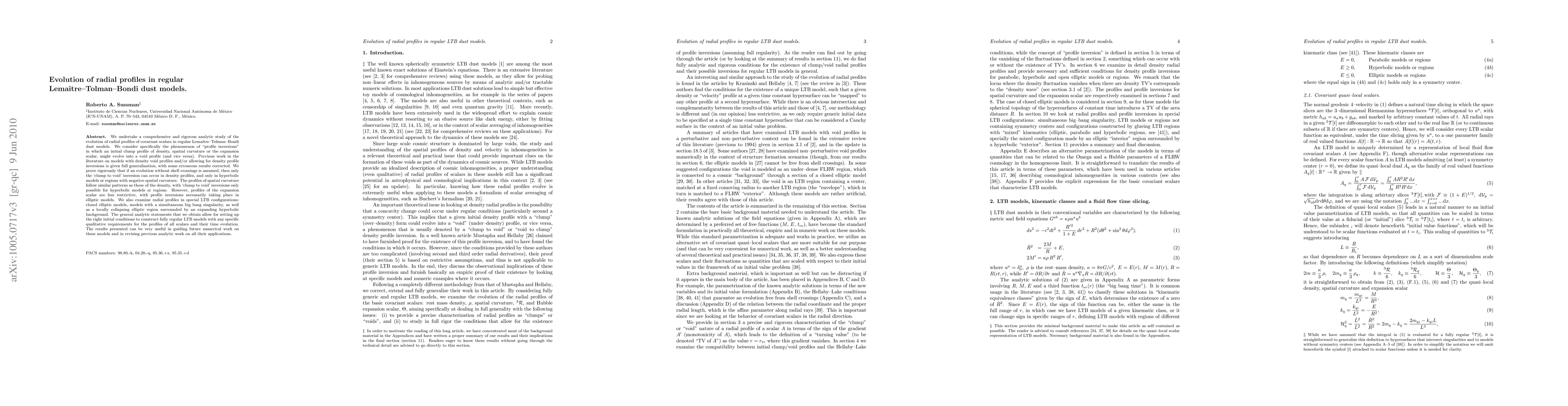 This paper rigorously analyzes the evolution of radial profiles in regular Lemaitre-Tolman-Bondi dust models, focusing on the phenomenon of "profile inversions" where initial clump profiles may evolve into void profiles. It corrects previous errors and establishes that 'clump to void' inversions are possible only in hyperbolic models or regions with negative spatial curvature, while elliptic models require specific initial conditions.