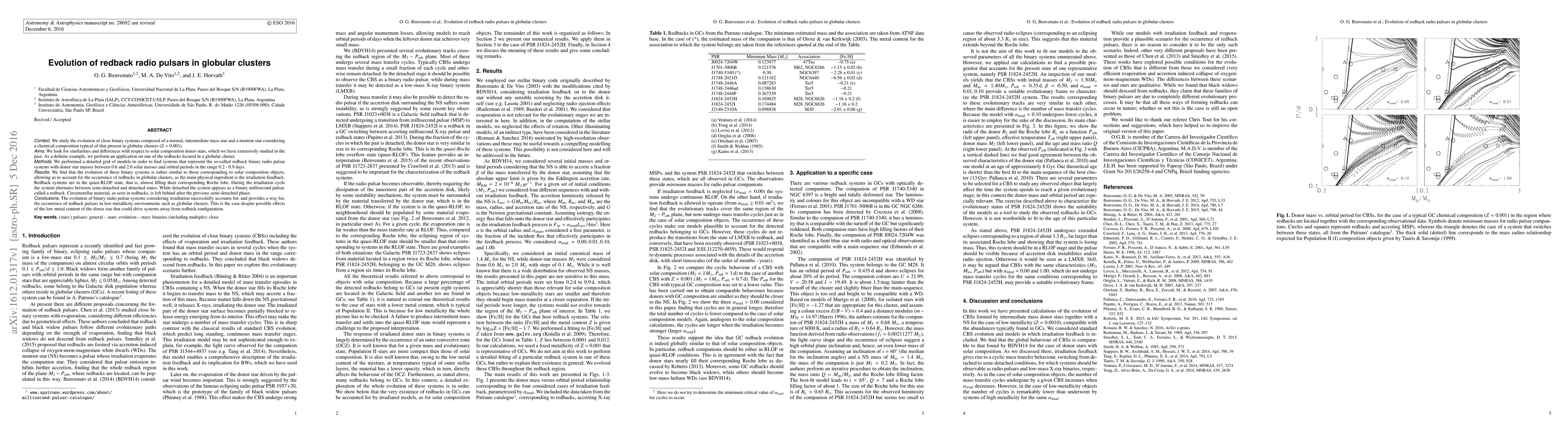 This paper investigates the evolution of close binary systems in globular clusters, focusing on redback radio pulsars with neutron stars and donor stars of low metallicity. The study finds that the evolution of these systems is similar to those with solar composition, primarily due to irradiation feedback, allowing for the occurrence of redback pulsars in low-metallicity environments despite potential donor star effects.