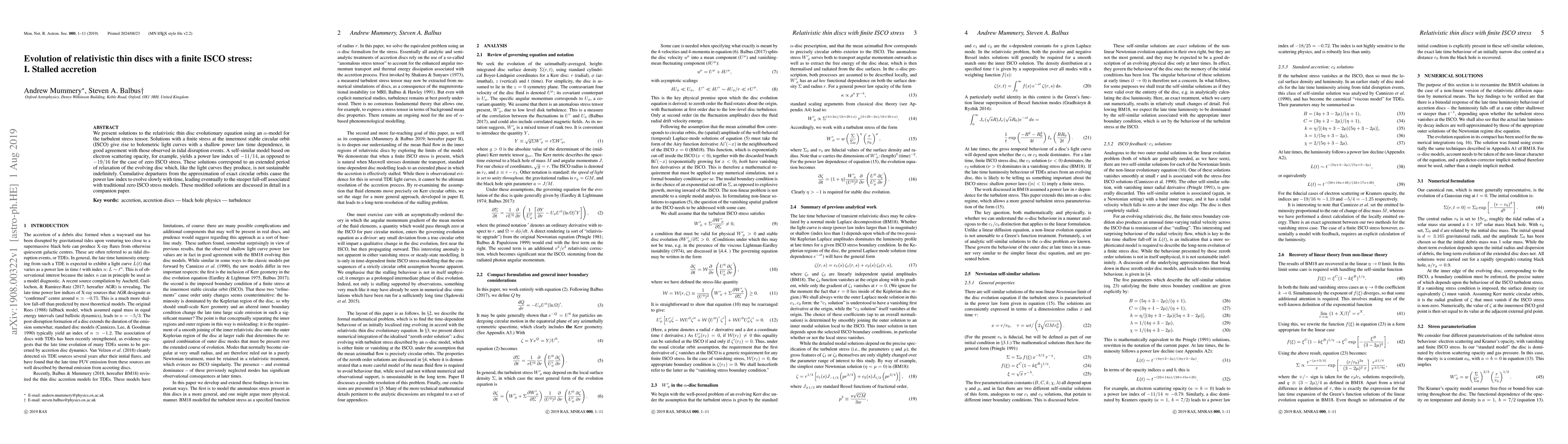 We present solutions to the relativistic thin disc evolutionary equation using an ${\alpha}$-model for the turbulent stress tensor. Solutions with a finite stress at the innermost stable circular orbit (ISCO) give rise to bolometric light curves with a shallow power law time dependence, in good agreement with those observed in tidal disruption events. A self-similar model based on electron scattering opacity, for example, yields a power law index of $-11/14$, as opposed to $-19/16$ for the case of zero ISCO stress. These solutions correspond to an extended period of relaxation of the evolving disc which, like the light curves they produce, is not sustainable indefinitely. Cumulative departures from the approximation of exact circular orbits cause the power law index to evolve slowly with time, leading eventually to the steeper fall-off associated with traditional zero ISCO stress models. These modified solutions are discussed in detail in a companion paper.