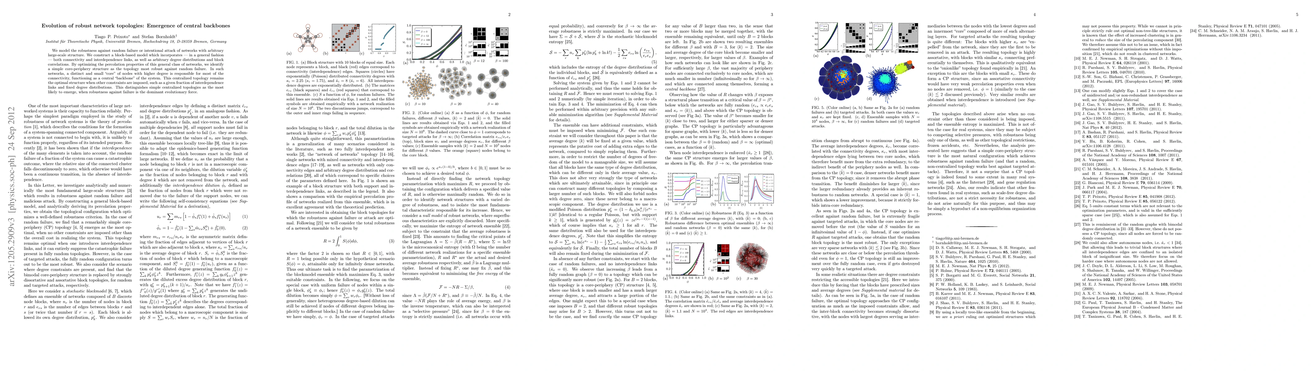 We model the robustness against random failure or intentional attack of networks with arbitrary large-scale structure. We construct a block-based model which incorporates --- in a general fashion --- both connectivity and interdependence links, as well as arbitrary degree distributions and block correlations. By optimizing the percolation properties of this general class of networks, we identify a simple core-periphery structure as the topology most robust against random failure. In such networks, a distinct and small "core" of nodes with higher degree is responsible for most of the connectivity, functioning as a central "backbone" of the system. This centralized topology remains the optimal structure when other constraints are imposed, such as a given fraction of interdependence links and fixed degree distributions. This distinguishes simple centralized topologies as the most likely to emerge, when robustness against failure is the dominant evolutionary force.
