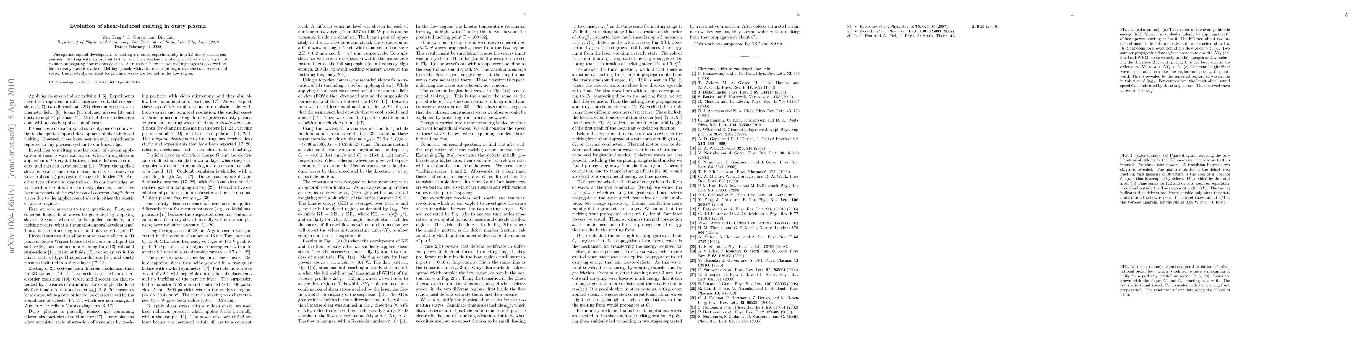 The spatiotemporal development of melting is studied experimentally in a 2D dusty plasma suspension. Starting with an ordered lattice, and then suddenly applying localized shear, a pair of counter-propagating flow regions develop. A transition between two melting stages is observed before a steady state is reached. Melting spreads with a front that propagates at the transverse sound speed. Unexpectedly, coherent longitudinal waves are excited in the flow region.