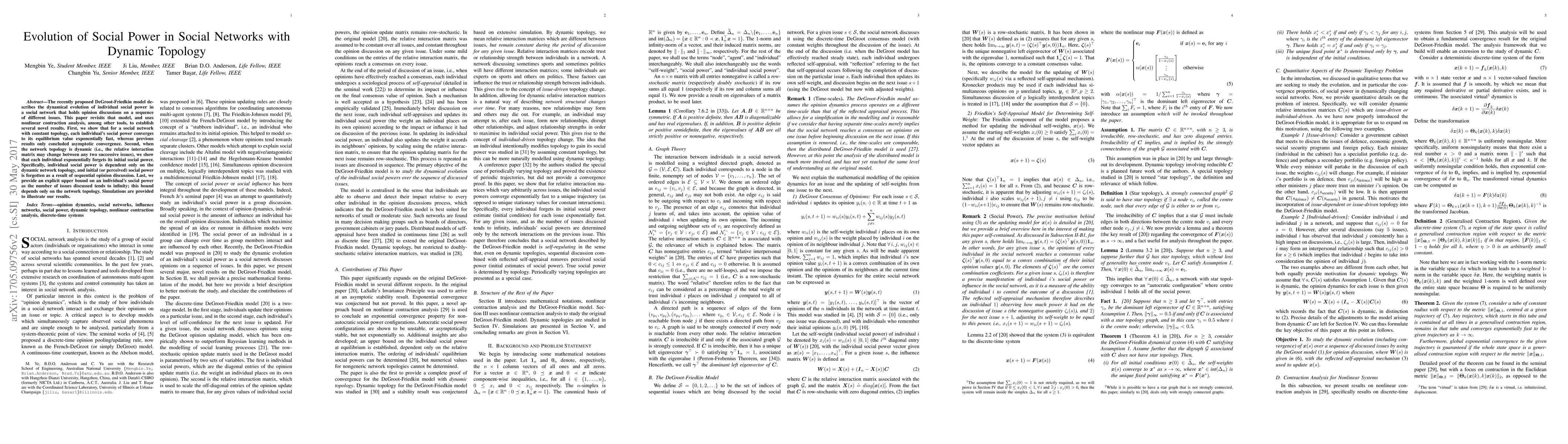 The recently proposed DeGroot-Friedkin model describes the dynamical evolution of individual social power in a social network that holds opinion discussions on a sequence of different issues. This paper revisits that model, and uses nonlinear contraction analysis, among other tools, to establish several novel results. First, we show that for a social network with constant topology, each individual's social power converges to its equilibrium value exponentially fast, whereas previous results only concluded asymptotic convergence. Second, when the network topology is dynamic (i.e., the relative interaction matrix may change between any two successive issues), we show that each individual exponentially forgets its initial social power. Specifically, individual social power is dependent only on the dynamic network topology, and initial (or perceived) social power is forgotten as a result of sequential opinion discussion. Last, we provide an explicit upper bound on an individual's social power as the number of issues discussed tends to infinity; this bound depends only on the network topology. Simulations are provided to illustrate our results.