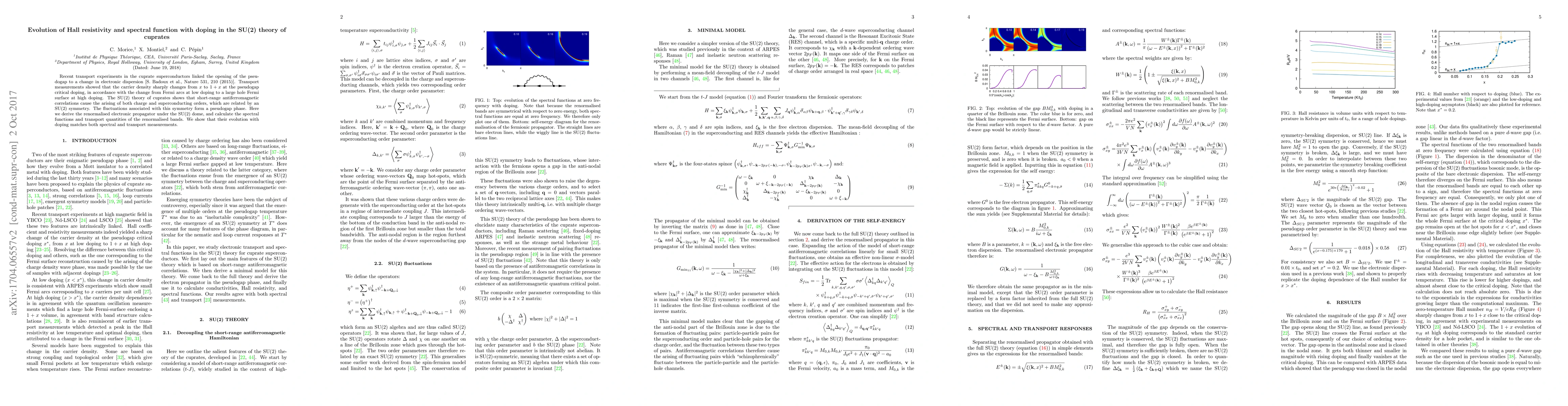 This paper derives the renormalised electronic propagator under the SU(2) theory of cuprates and calculates spectral functions and transport quantities, demonstrating that their evolution with doping aligns with experimental observations of pseudogap opening and changes in electronic dispersion.