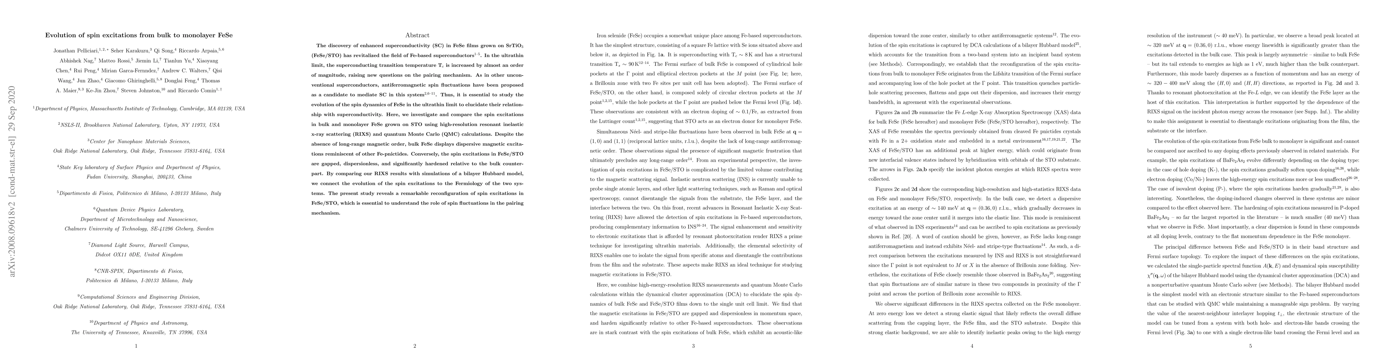 Researchers investigate spin excitations in bulk FeSe and monolayer FeSe grown on SrTiO3, finding gapped and dispersionless excitations in the monolayer, which are connected to Fermiology and essential for understanding the pairing mechanism.
