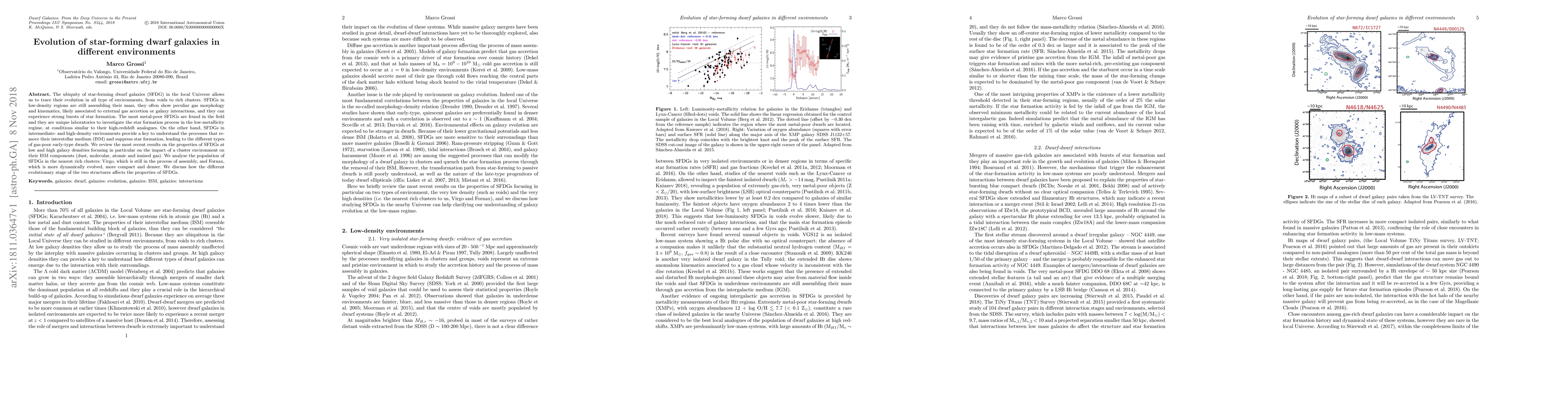 This paper explores the evolution of star-forming dwarf galaxies in various environments, highlighting their distinct characteristics in low-density regions versus those in rich clusters. It emphasizes the role of external factors like gas accretion and interactions in low-density areas, while focusing on the processes that strip away interstellar medium and suppress star formation in denser environments.