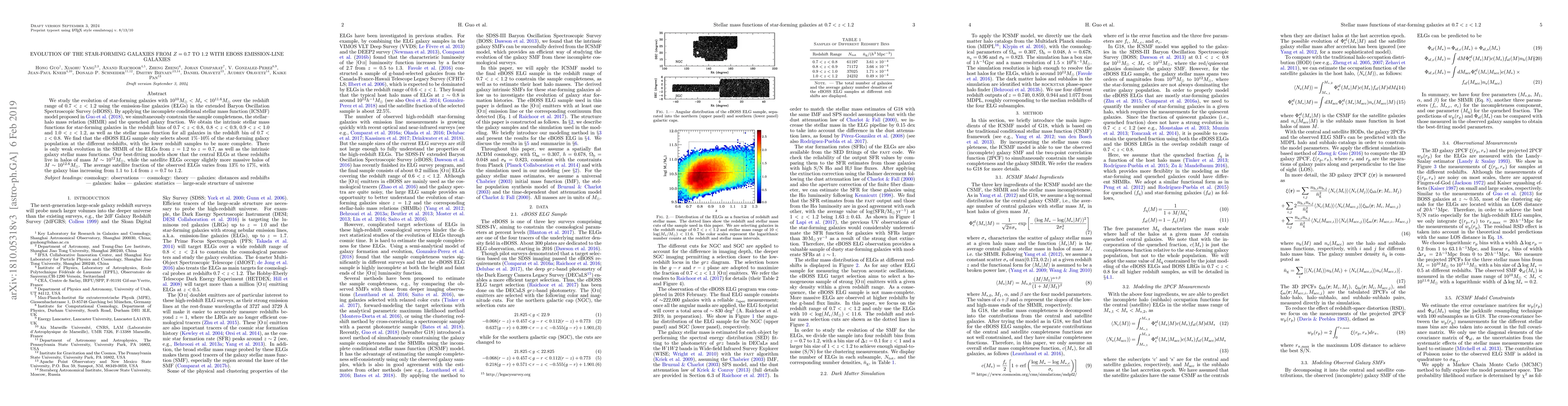 This study examines the evolution of star-forming galaxies in the universe from z=0.7 to 1.2 using eBOSS data, finding that only a small fraction of galaxies are selected for study and that there is limited growth in the relationship between stellar mass and galaxy size over this period.