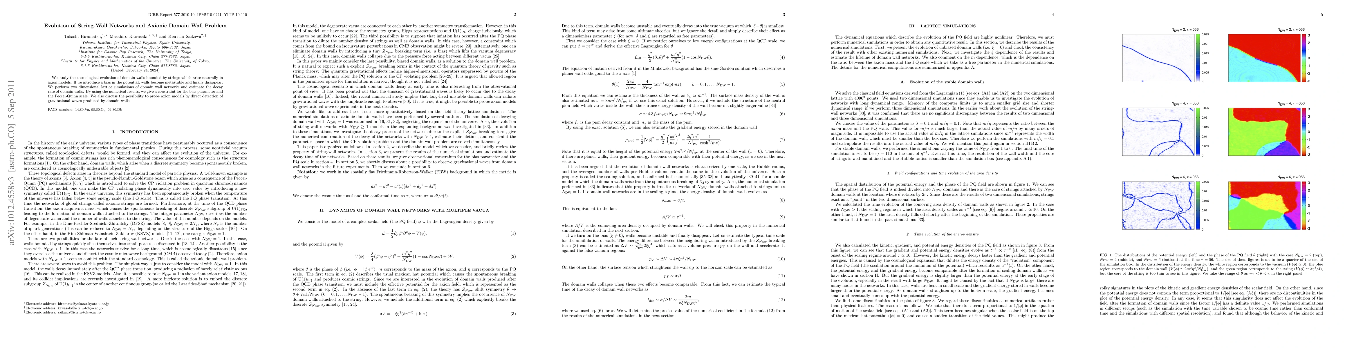 We study the cosmological evolution of domain walls bounded by strings which arise naturally in axion models. If we introduce a bias in the potential, walls become metastable and finally disappear. We perform two dimensional lattice simulations of domain wall networks and estimate the decay rate of domain walls. By using the numerical results, we give a constraint for the bias parameter and the Peccei-Quinn scale. We also discuss the possibility to probe axion models by direct detection of gravitational waves produced by domain walls.