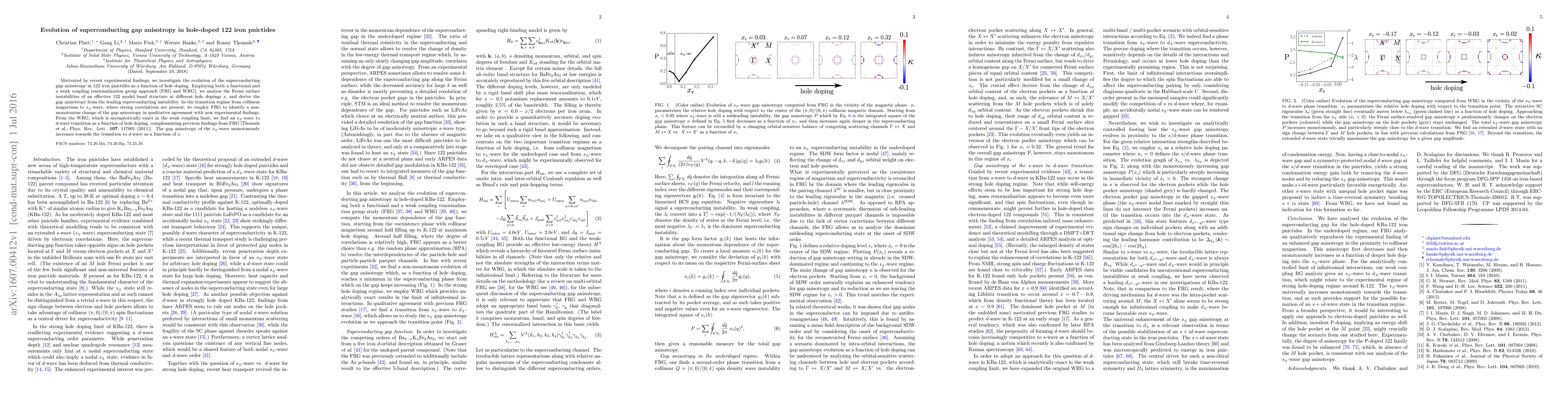 This paper investigates the evolution of superconducting gap anisotropy in hole-doped 122 iron pnictides using functional and weak coupling renormalization group approaches. It finds a non-monotonic change in gap anisotropy in the transition regime from collinear magnetism to s_{\pm}-wave, and an s_{\pm}-wave to d-wave transition with increasing hole doping.