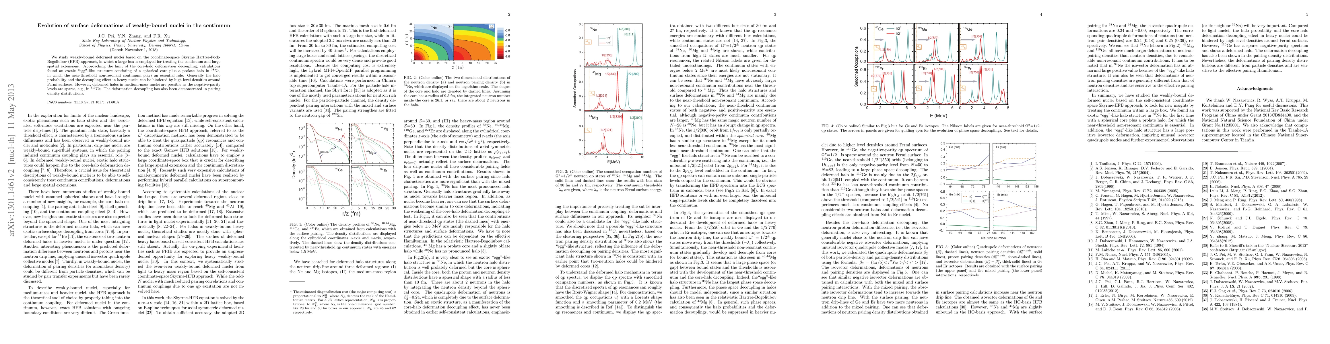 We study weakly-bound deformed nuclei based on the coordinate-space Skyrme Hartree-Fock-Bogoliubov approach, in which a large box is employed for treating the continuum and surface diffuseness. Approaching the limit of core-halo deformation decoupling, calculations found an exotic "egg"-like structure consisting of a spherical core plus a prolate halo in $^{38}$Ne, in which the resonant continuum plays an essential role. Generally the halo probability and the decoupling effect in heavy nuclei are reduced compared to light nuclei, due to denser level densities around Fermi surfaces. However, deformed halos in medium-mass nuclei are possible with sparse levels of negative parity, for example, in $^{110}$Ge. The surface deformations of pairing density distributions are also influenced by the decoupling effect and are sensitive to the effective pairing Hamiltonian.