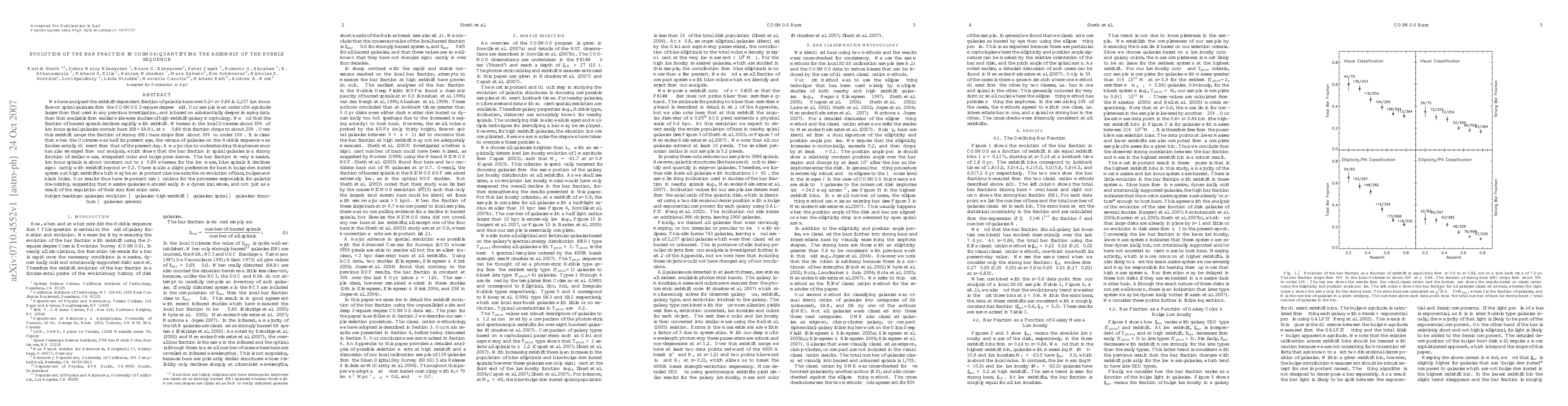 We have analyzed the redshift-dependent fraction of galactic bars over