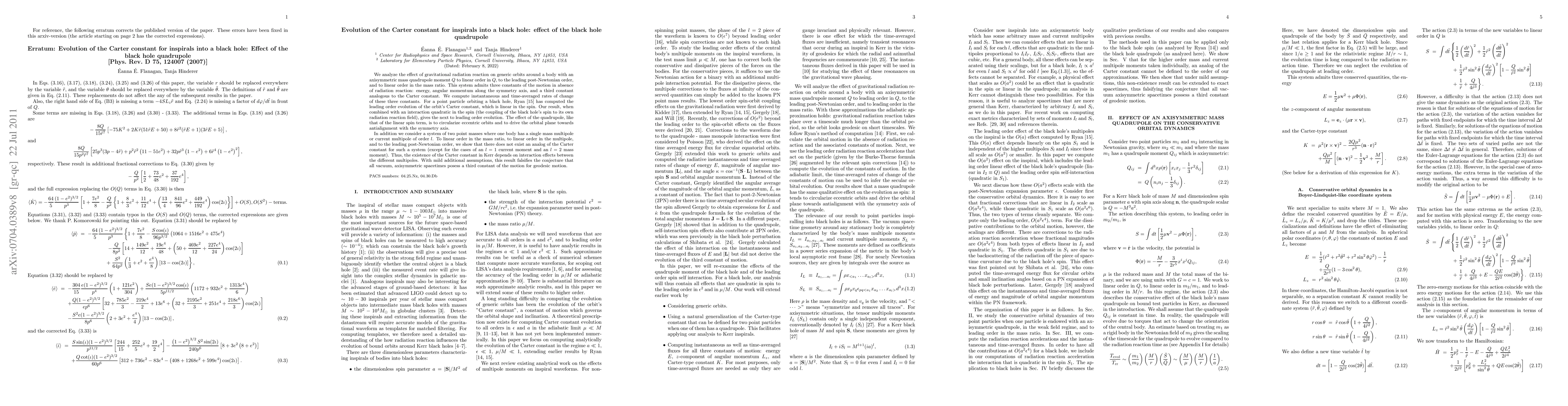 This paper investigates the evolution of the Carter constant for orbits around a black hole with a quadrupole moment, focusing on gravitational radiation effects. It finds that the quadrupole, similar to the spin, circularizes orbits and aligns the orbital plane, while also showing that no analogous constant exists for systems with mass or current multipoles, challenging the conjecture of a third constant of motion in all axisymmetric spacetimes.