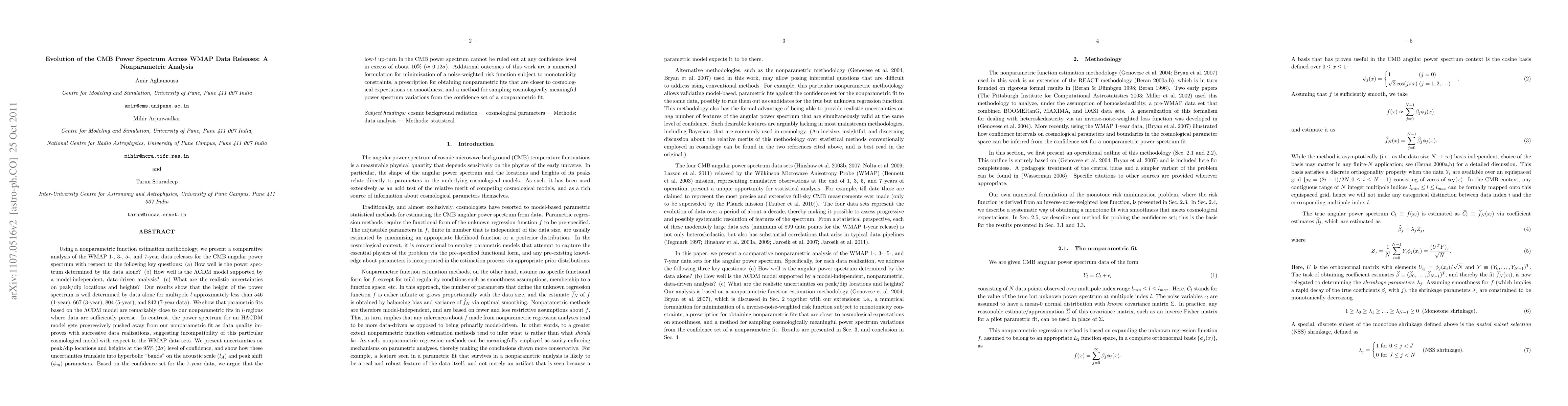 Using a nonparametric function estimation methodology, we present a comparative analysis of the WMAP 1-, 3-, 5-, and 7-year data releases for the CMB angular power spectrum with respect to the following key questions: (a) How well is the power spectrum determined by the data alone? (b) How well is the $\Lambda$CDM model supported by a model-independent, data-driven analysis? (c) What are the realistic uncertainties on peak/dip locations and heights? Our results show that the height of the power spectrum is well determined by data alone for multipole l approximately less than 546 (1-year), 667 (3-year), 804 (5-year), and 842 (7-year data). We show that parametric fits based on the $\Lambda$CDM model are remarkably close to our nonparametric fits in $l$-regions where data are sufficiently precise. In contrast, the power spectrum for an H$\Lambda$CDM model gets progressively pushed away from our nonparametric fit as data quality improves with successive data realizations, suggesting incompatibility of this particular cosmological model with respect to the WMAP data sets. We present uncertainties on peak/dip locations and heights at the 95% ($2 \sigma$) level of confidence, and show how these uncertainties translate into hyperbolic "bands" on the acoustic scale ($l_A$) and peak shift ($\phi_m$) parameters. Based on the confidence set for the 7-year data, we argue that the low-l up-turn in the CMB power spectrum cannot be ruled out at any confidence level in excess of about 10% ($\approx 0.12 \sigma$). Additional outcomes of this work are a numerical formulation for minimization of a noise-weighted risk function subject to monotonicity constraints, a prescription for obtaining nonparametric fits that are closer to cosmological expectations on smoothness, and a method for sampling cosmologically meaningful power spectrum variations from the confidence set of a nonparametric fit.