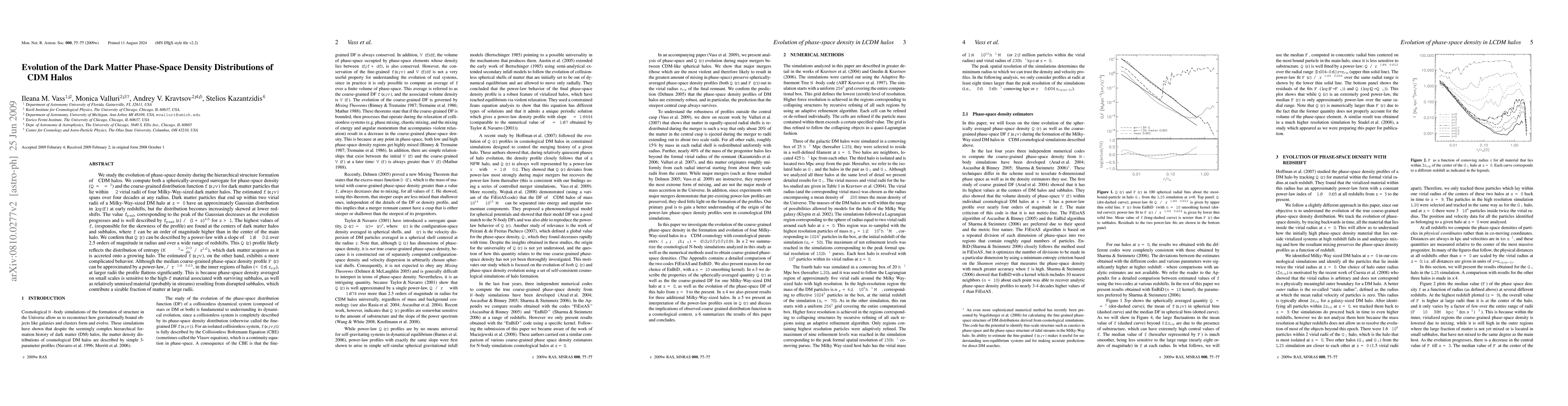 This paper investigates the evolution of phase-space density distributions in LCDM halos during hierarchical structure formation, finding that dark matter particles exhibit a Gaussian distribution in log(f) at early times that skews at lower redshifts. The highest phase-space densities are found in the centers of halos and subhalos, with the peak value decreasing as a power-law with redshift.