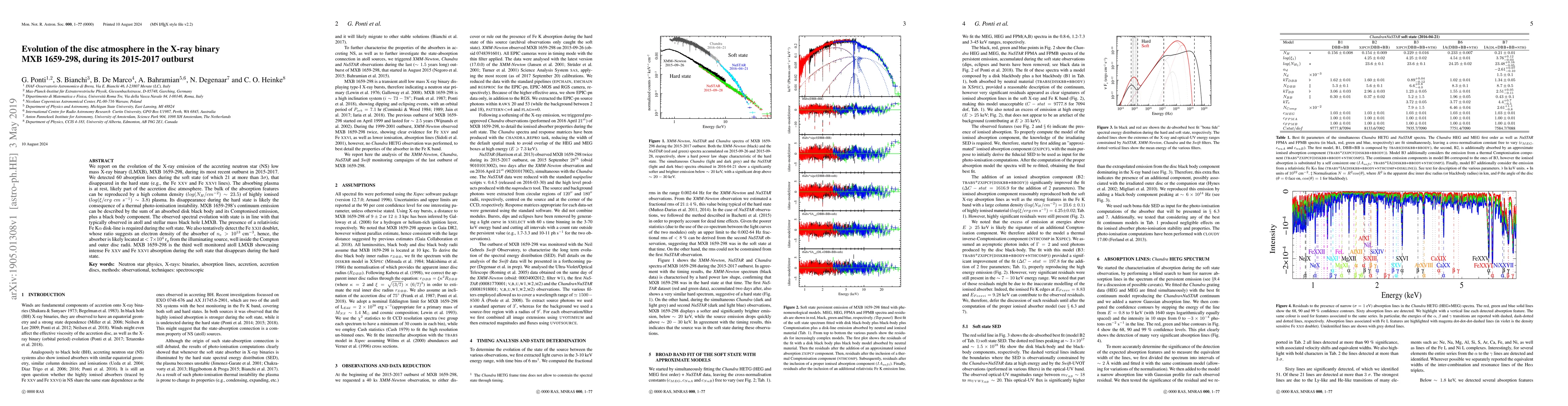We report on the evolution of the X-ray emission of the accreting neutron star (NS) low mass X-ray binary (LMXB), MXB 1659-298, during its most recent outburst in 2015-2017. We detected 60 absorption lines during the soft state (of which 21 at more than 3 $\sigma$), that disappeared in the hard state (e.g., the Fe xxv and Fe xxvi lines). The absorbing plasma is at rest, likely part of the accretion disc atmosphere. The bulk of the absorption features can be reproduced by a high column density ($log(N_H/cm^{-2})\sim23.5$) of highly ionised ($log(\xi/erg~cm~s^{-1})\sim3.8$) plasma. Its disappearance during the hard state is likely the consequence of a thermal photo-ionisation instability. MXB 1659-298's continuum emission can be described by the sum of an absorbed disk black body and its Comptonised emission, plus a black body component. The observed spectral evolution with state is in line with that typically observed in atoll and stellar mass black hole LMXB. The presence of a relativistic Fe K$\alpha$ disk-line is required during the soft state. We also tentatively detect the Fe xxii doublet, whose ratio suggests an electron density of the absorber of $n_e>10^{13} cm^{-3}$, hence, the absorber is likely located at $<7\times10^4 r_g$ from the illuminating source, well inside the Compton and outer disc radii. MXB 1659-298 is the third well monitored atoll LMXB showcasing intense Fe xxv and Fe xxvi absorption during the soft state that disappears during the hard state.