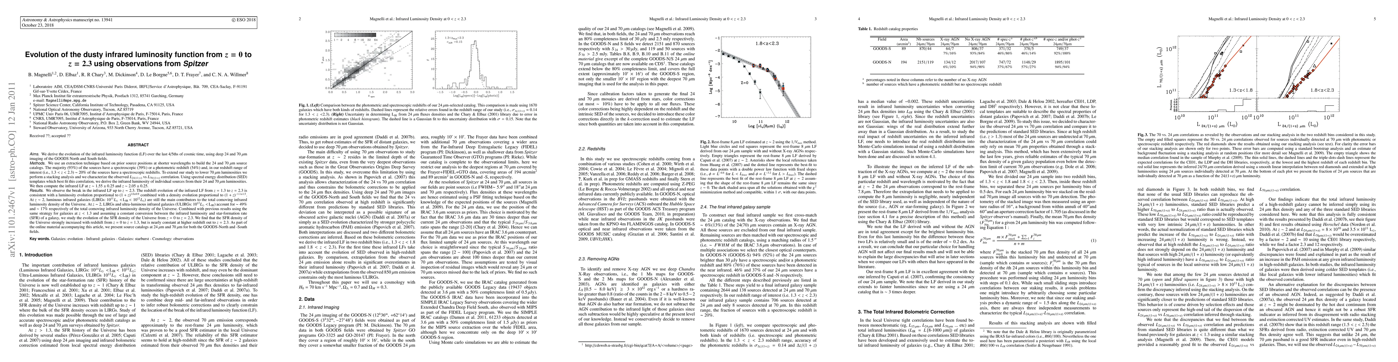 This study uses Spitzer observations to derive the evolution of the infrared luminosity function from z=0 to z=2.3, finding that luminous IR galaxies dominate the total comoving IR luminosity density at z~2. The star-formation rate density increases strongly up to z=1.3 but remains nearly constant at higher redshifts.