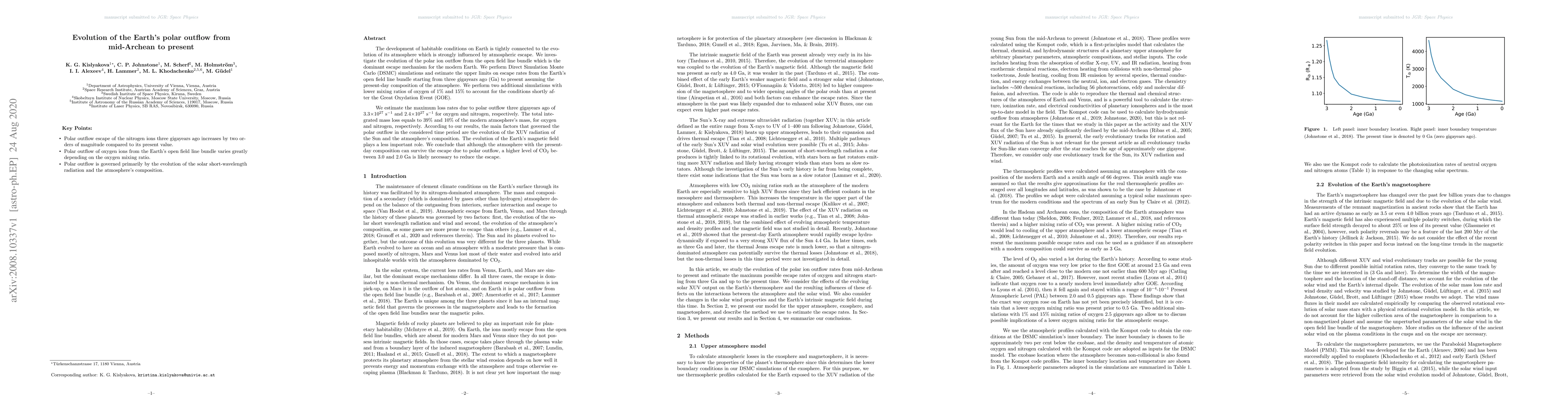 This research uses Direct Simulation Monte Carlo (DSMC) to study Earth's polar outflow evolution from 3 gigayears ago to present, finding that solar XUV radiation and atmospheric composition significantly impact escape rates. The study suggests a higher CO2 level around 3.0-2.0 gigayears ago could have mitigated atmospheric loss.