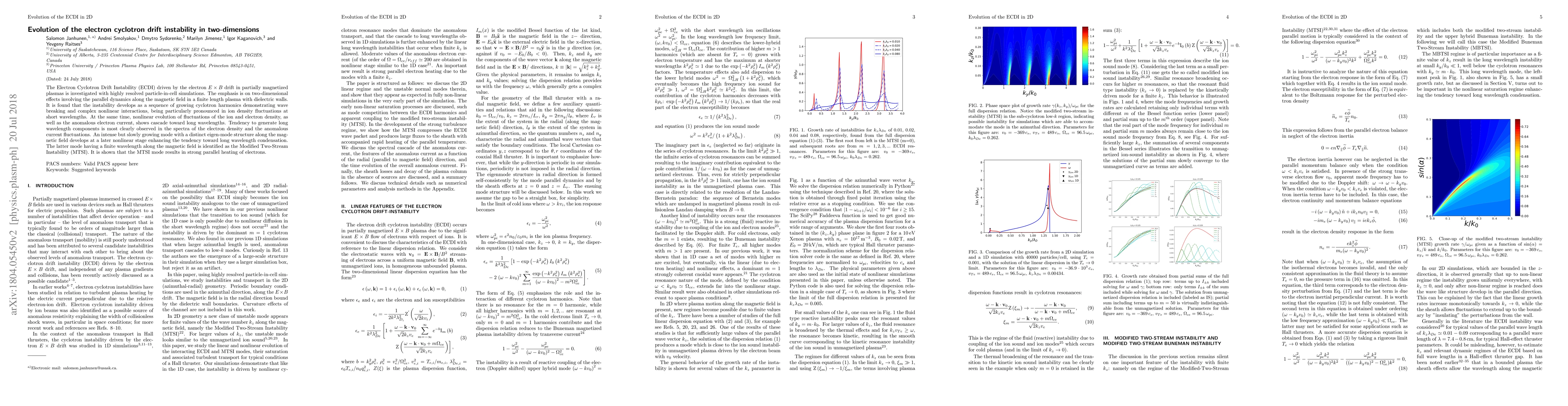 This paper investigates the Electron Cyclotron Drift Instability in two-dimensional, partially magnetized plasmas, revealing a sequence of growing cyclotron harmonics and nonlinear interactions, particularly in ion density fluctuations. The study identifies a later-stage Modified Two-Stream Instability mode that leads to significant parallel heating of electrons.