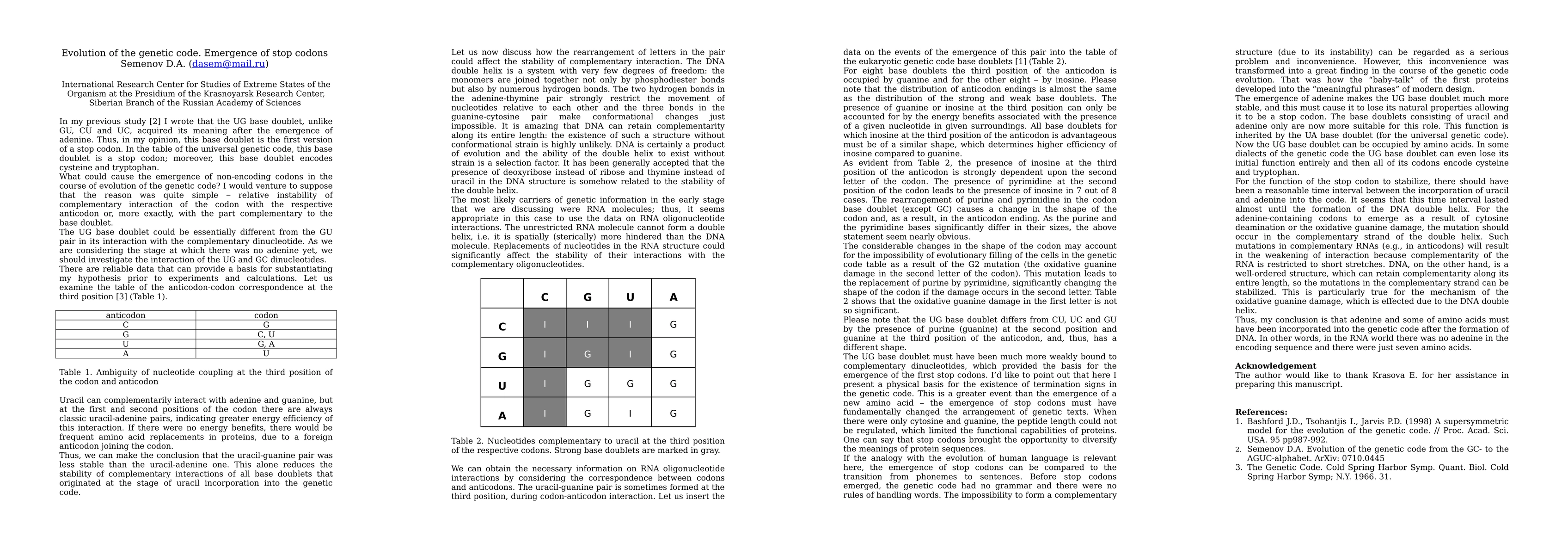 What could cause the emergence of non-encoding codons in the course of evolution of the genetic code? Hypothesis of evolution of the genetic code from GC to the AGUC-alphabet account for existence of stop codons.