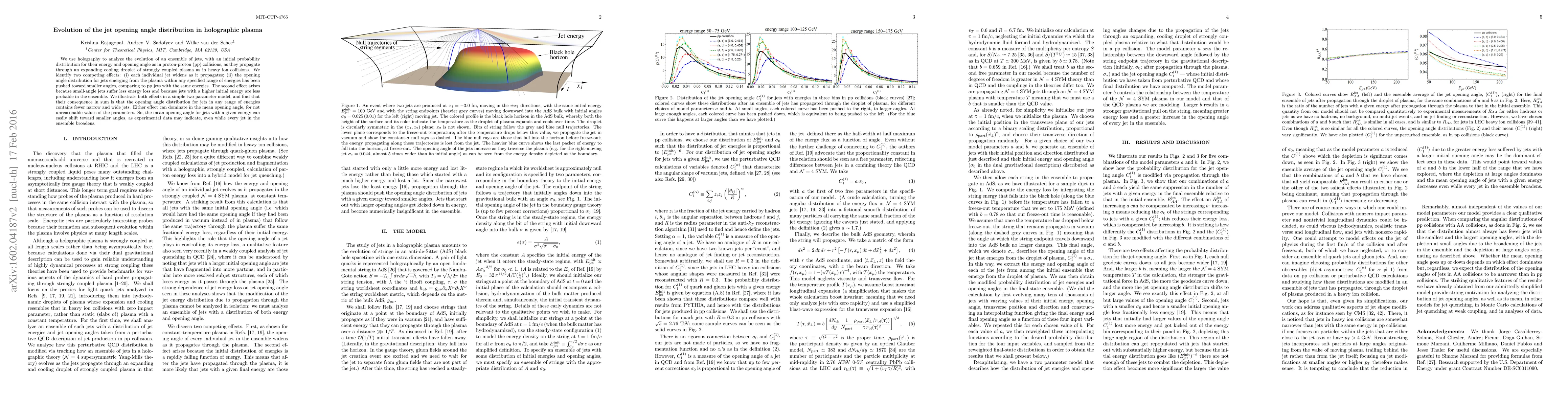 This paper uses holography to study how jets in a strongly coupled plasma evolve, finding that while individual jets widen, the overall distribution shifts toward smaller opening angles due to less energy loss in small-angle jets and a reduced probability of high-energy jets. The net effect is a reduction in both narrow and wide jets in the distribution.