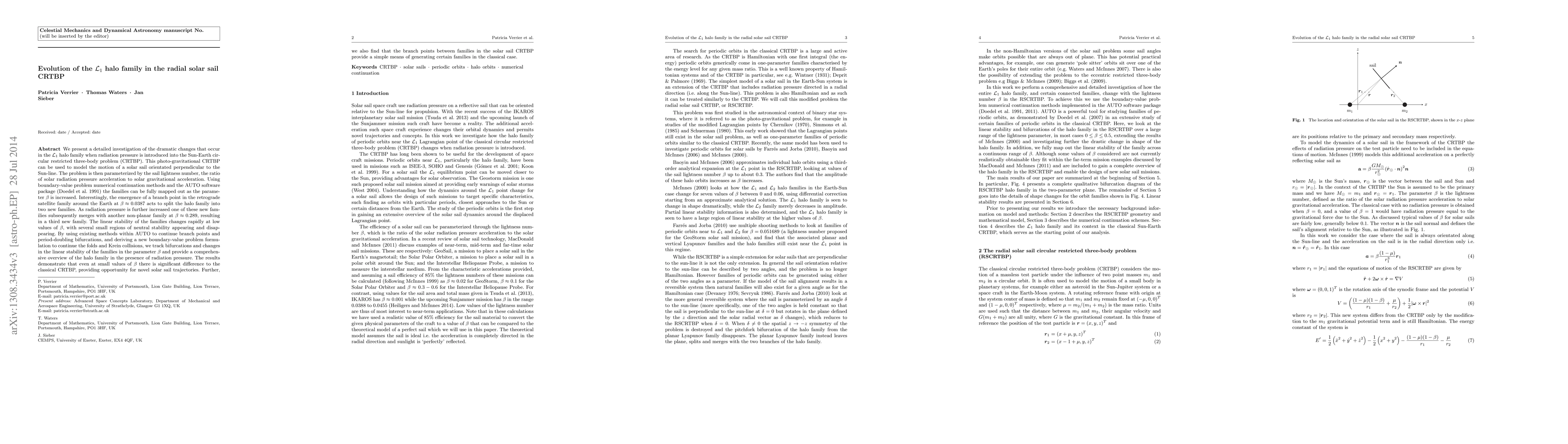 This research explores how radiation pressure from the Sun affects the L1 halo family in the Sun-Earth solar sail CRTBP. Using numerical methods and AUTO software, the study maps family evolution with increasing radiation pressure, revealing new families' emergence and merging. It also tracks rapid changes in linear stability and identifies bifurcation points. The findings suggest significant differences from the classical CRTBP at small radiation pressure values, offering potential for innovative solar sail trajectories, and demonstrate a method to generate certain classical families via solar sail branch points.