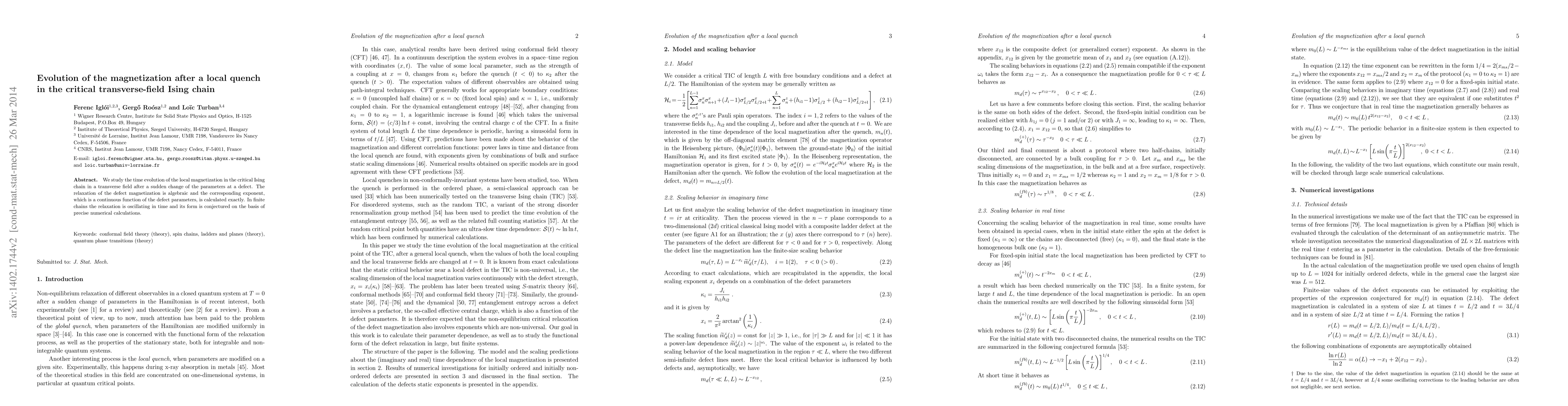 This paper investigates the dynamics of local magnetization in the critical transverse-field Ising chain following a sudden parameter change at a defect. The study reveals an algebraic relaxation of defect magnetization with an exact continuous function exponent, and proposes a conjectured oscillating form in finite chains based on numerical calculations.