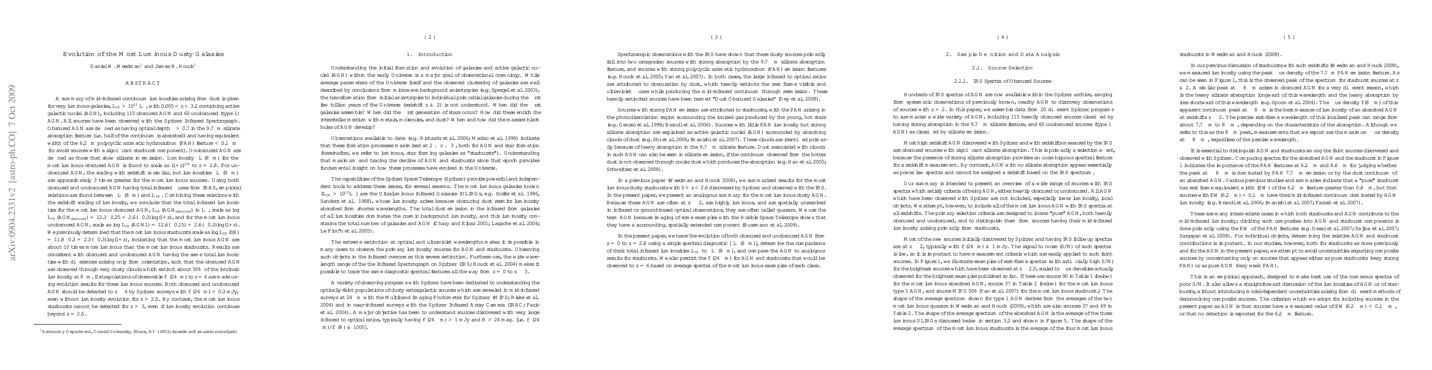 This paper examines the evolution of mid-infrared luminosities in the most luminous dusty galaxies, finding that obscured and unobscured active galactic nuclei (AGN) exhibit similar total luminosities, with differences due to orientation. The study concludes that the most luminous AGN are detectable up to z ~ 6, while the most luminous starbursts are not detectable beyond z = 3.