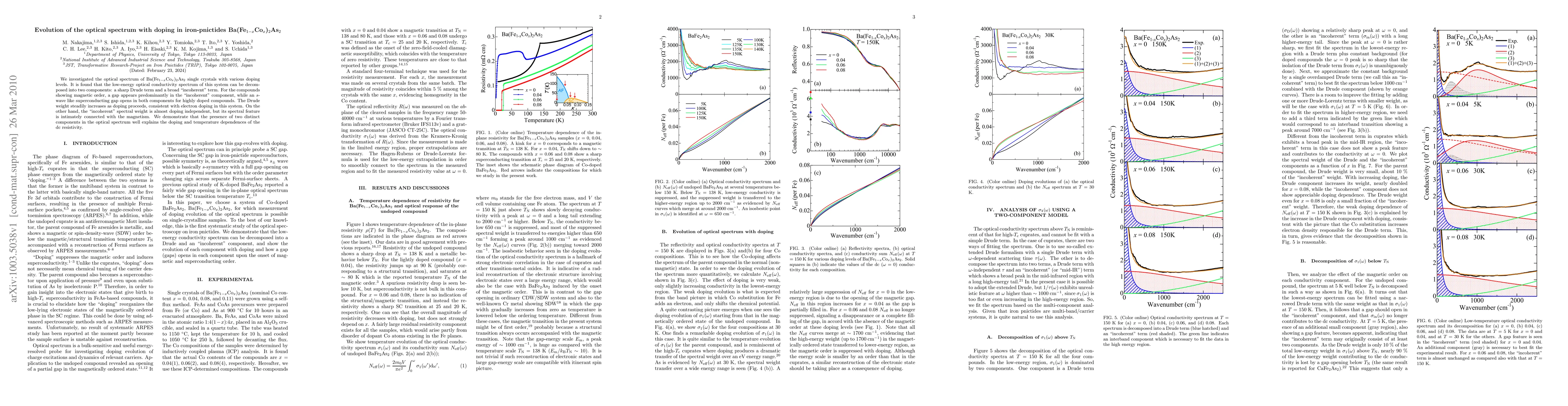 Researchers studied the optical spectrum of iron pnictide materials with varying levels of doping and found two distinct components: a Drude term and an incoherent term, which open gaps at different temperatures.