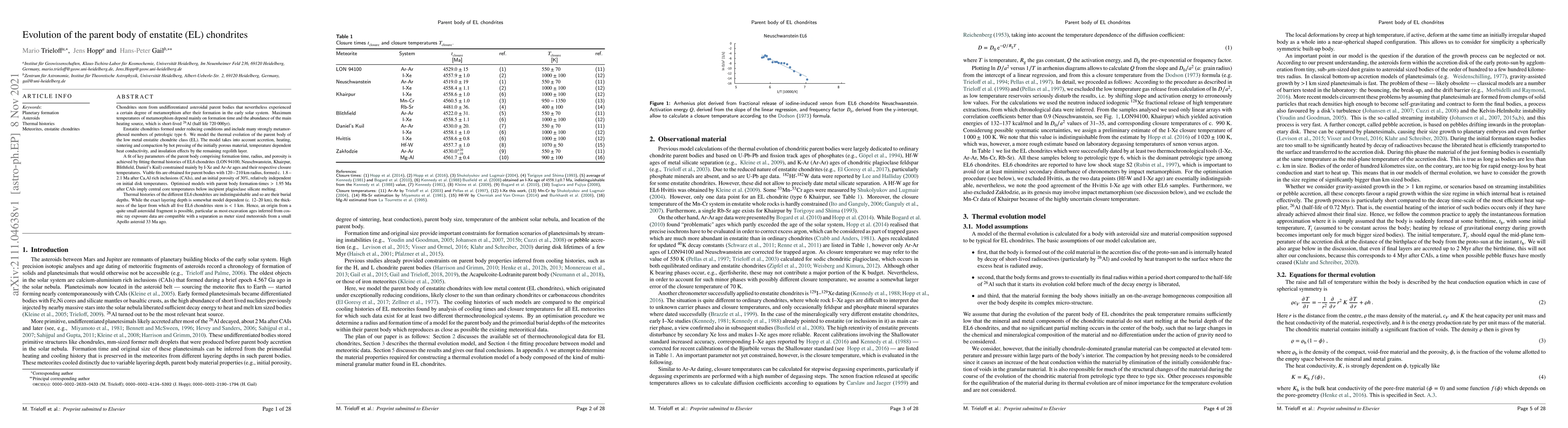 Researchers modeled the thermal evolution of enstatite chondrites' parent bodies, finding that they likely originated from small asteroid fragments formed 1.8-2.1 million years after the formation of calcium-aluminum inclusions.